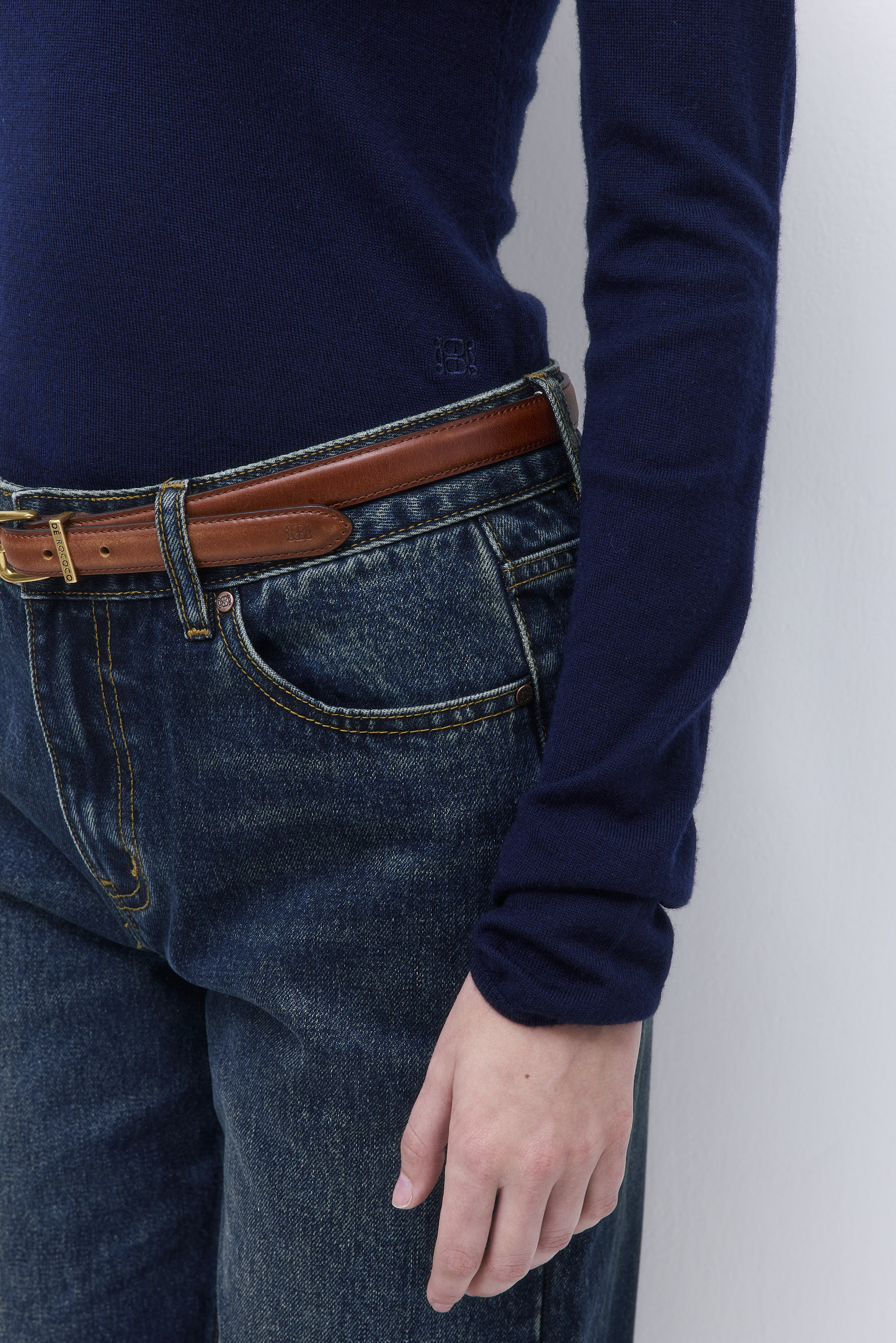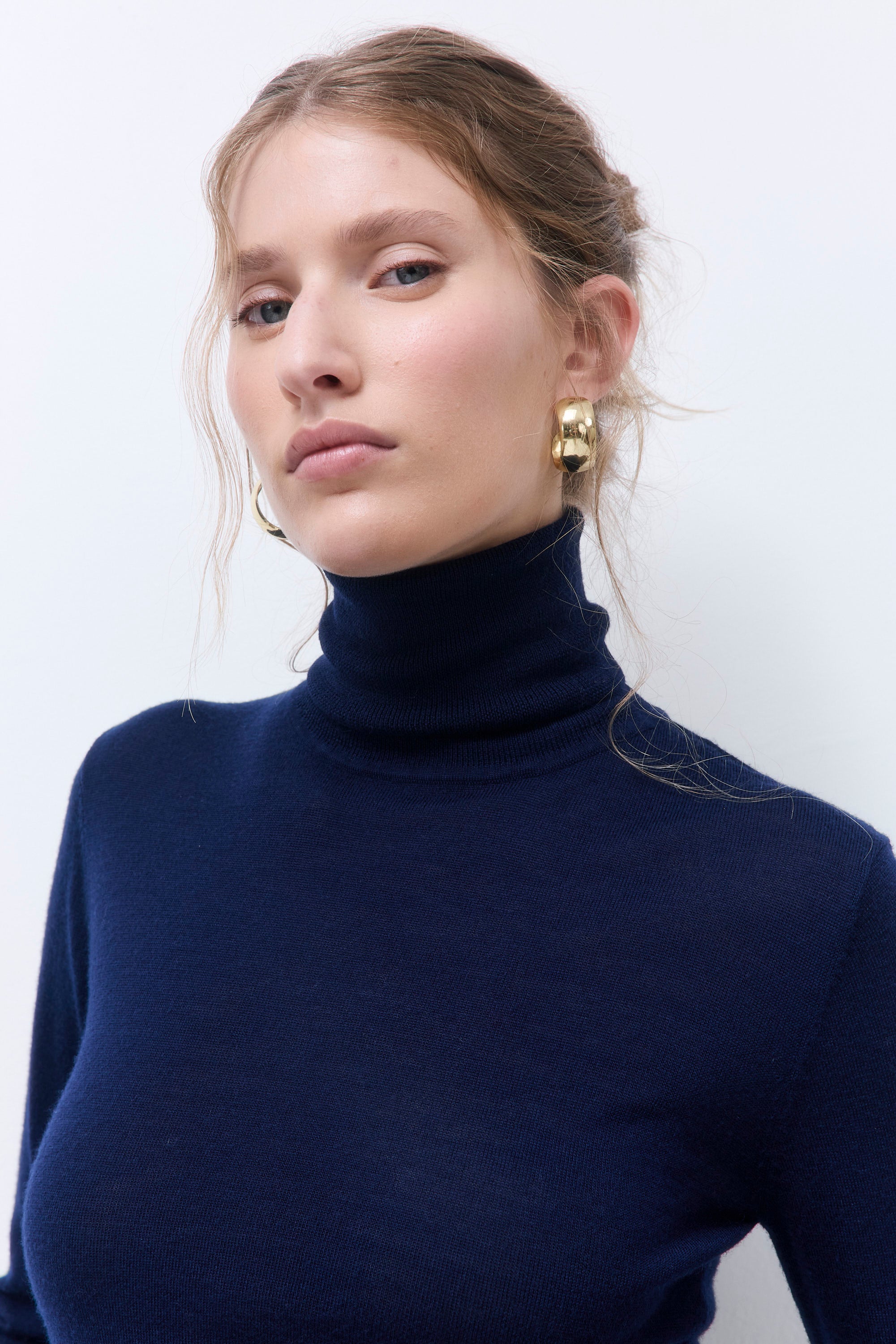 Your newest obsessions; soft, cozy, and perfect for the colder months. Relaxed, slim fit golf. ribbed neckline, clean finishes. Embroidered tonal logo on the front side. Layer it with our iconic Stitch Detail Vegan Leather Jacket and our sleek Stretchy Cropped PAnts for the ultimate winter's day look.
