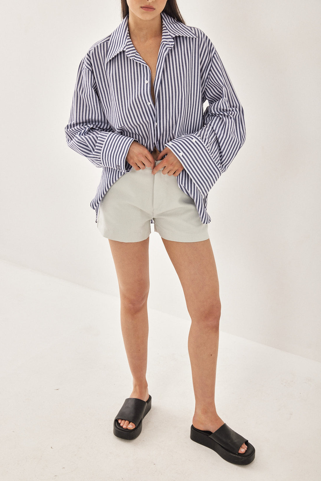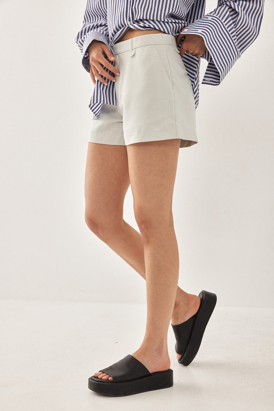 Mid waisted shorts from our signature tailored daddy collection. A must have for your summer wardrobe. Featuring two side pockets and belt loops. Front hidden zip and metal hook closure. Style it with a basic tee a kitten heel for a day to night look.