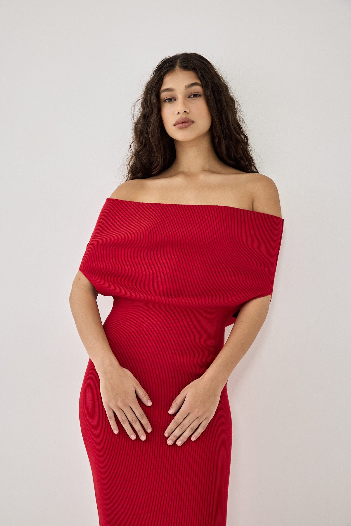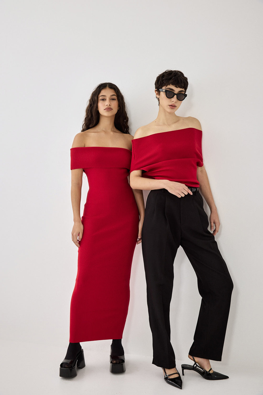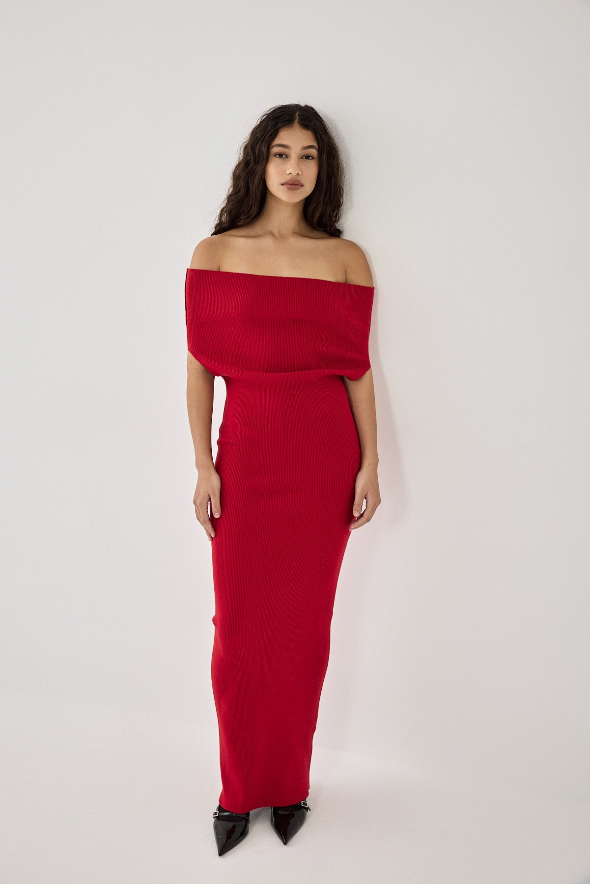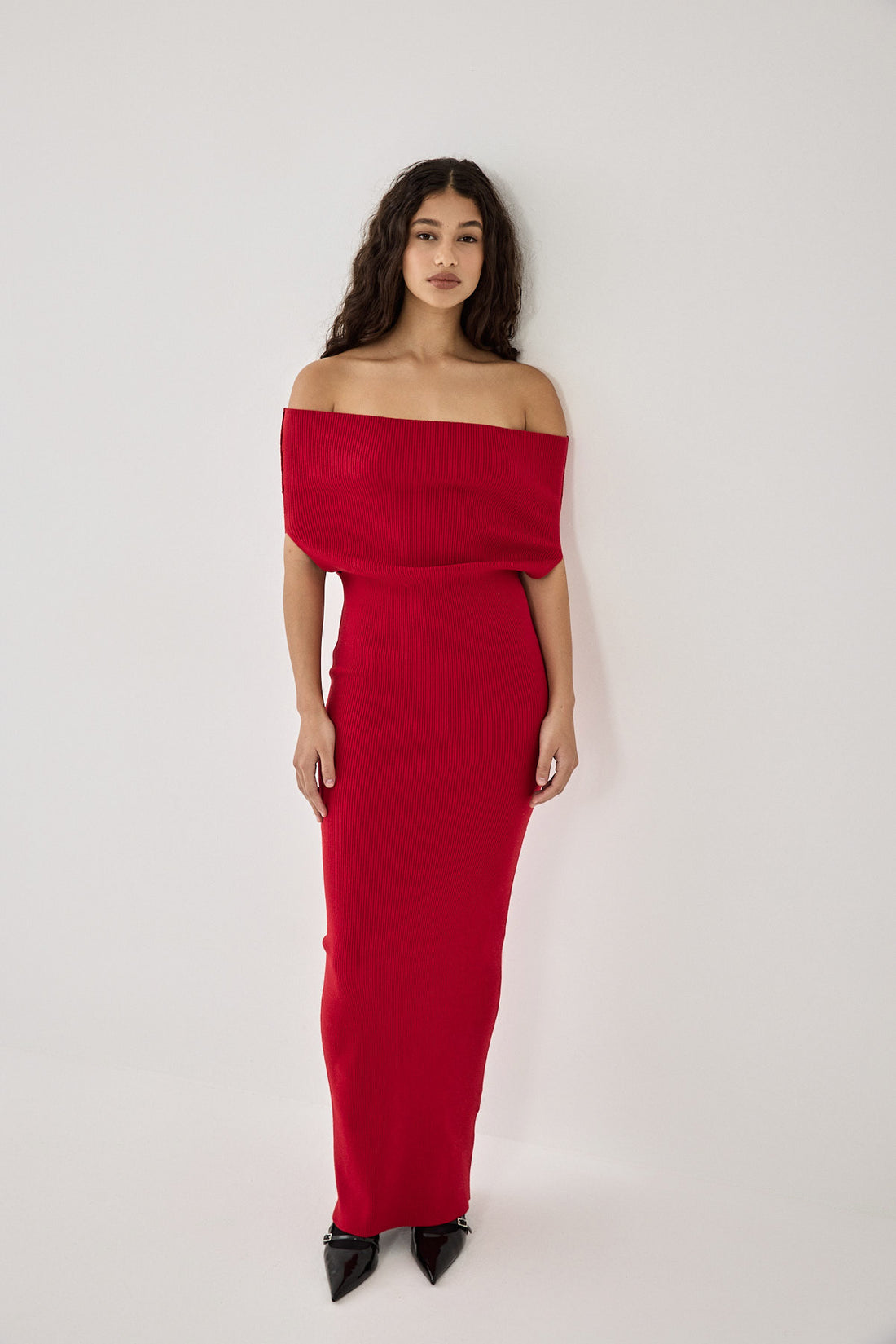 Your new go to dress for every occasion. Off shoulder tight ribbed dress. Featuring a versatile folding detailing. Can be worn folded or unfolded. When unfolded, the length of the dress is slightly lengthened. Tight ribbed material that hugs the body. Ultra smooth and sculpting. Full length, maxi silhouette. Style it with a statement shoe for a bold and super-chic look, perfect for both everyday and date night.