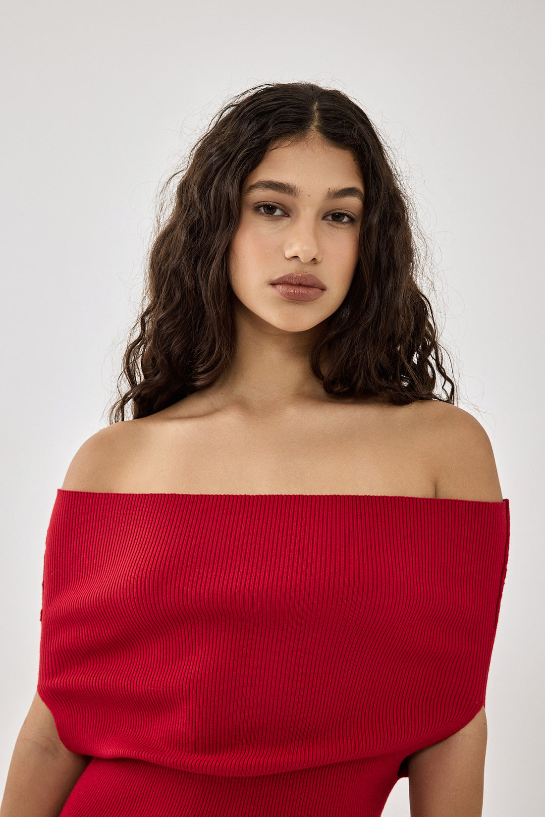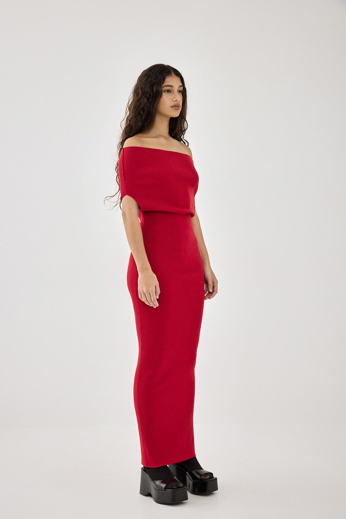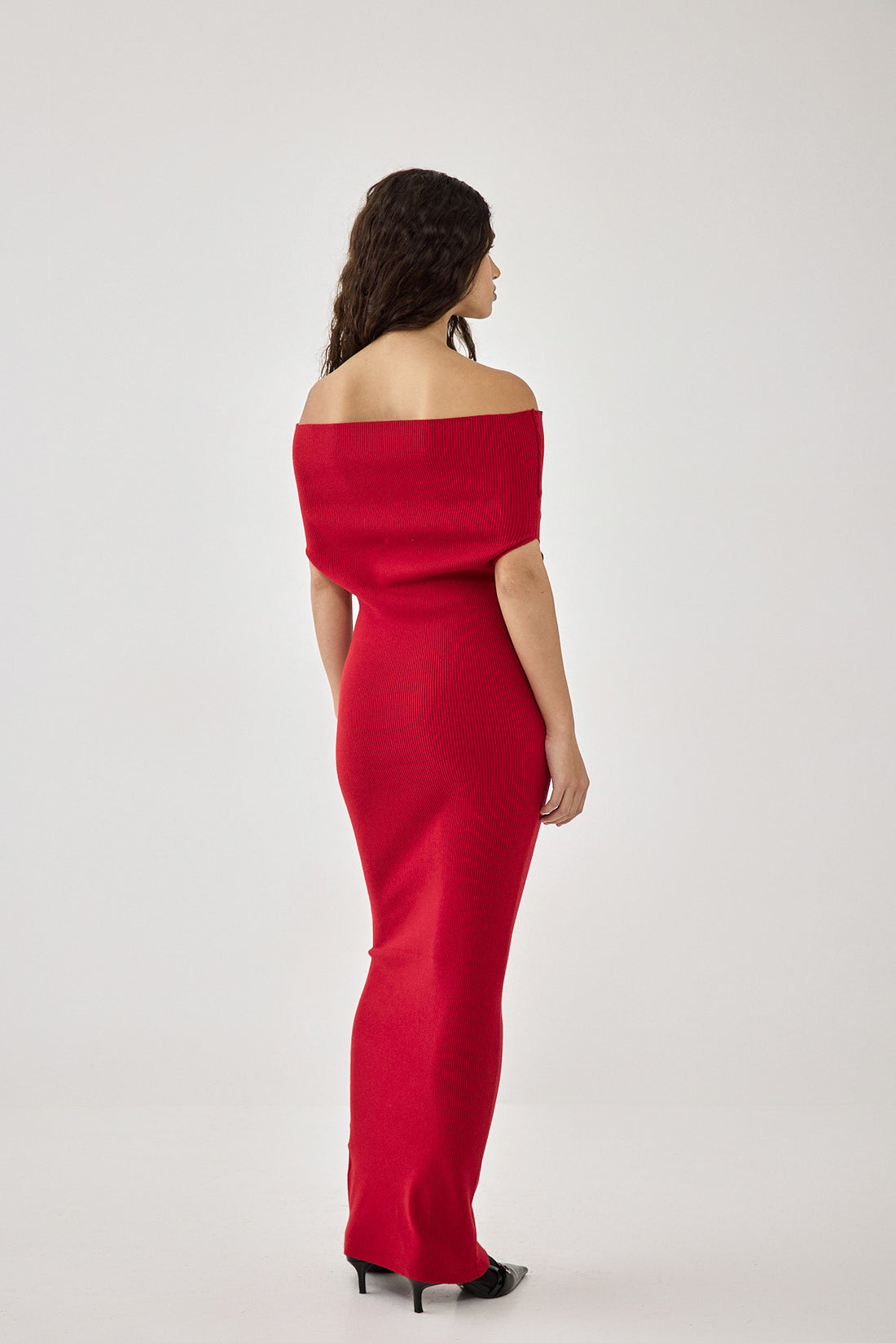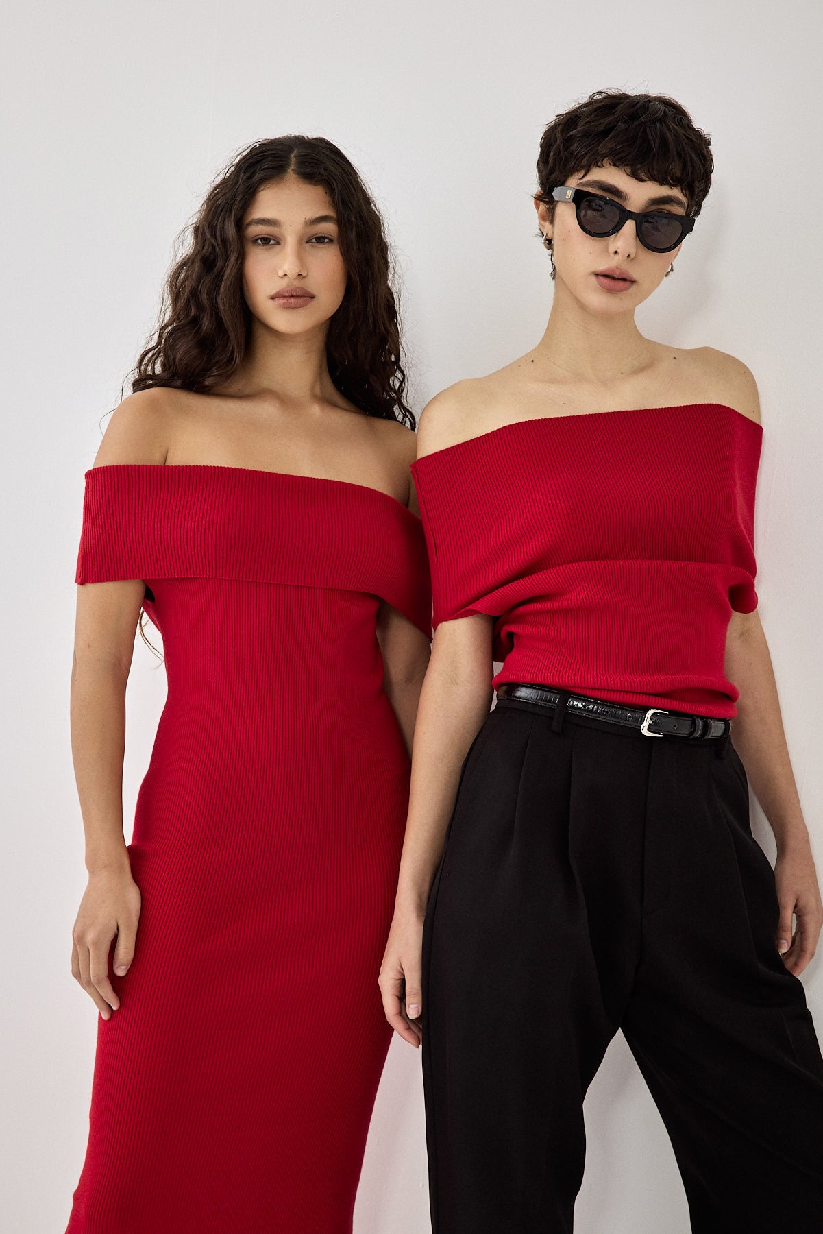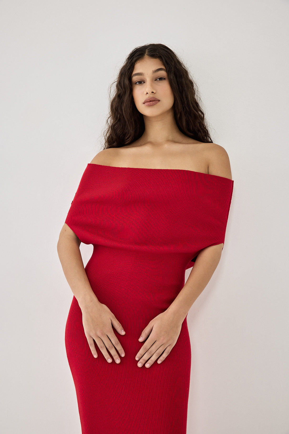 Your new go to dress for every occasion. Off shoulder tight ribbed dress. Featuring a versatile folding detailing. Can be worn folded or unfolded. When unfolded, the length of the dress is slightly lengthened. Tight ribbed material that hugs the body. Ultra smooth and sculpting. Full length, maxi silhouette. Style it with a statement shoe for a bold and super-chic look, perfect for both everyday and date night.