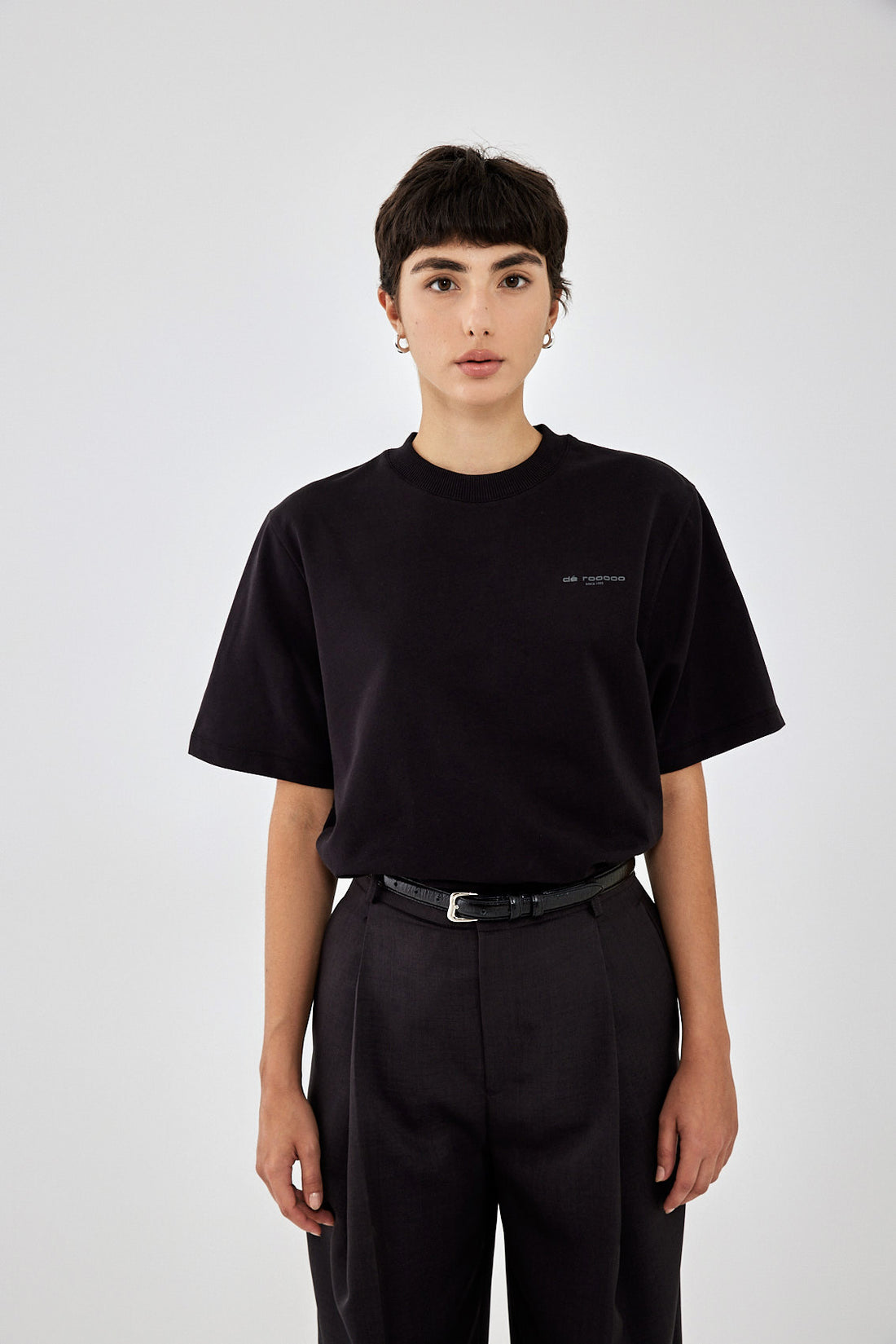 The perfect addition to your active wardrobe. T shirts in matching colors to the active sets, perfect for layering. Ribbed crew neckline. French terry. Delicate tone on tone rubber print on the front and back. Oversized fit, sits loosely on the body. Style it with the matching joggers to complete the set.