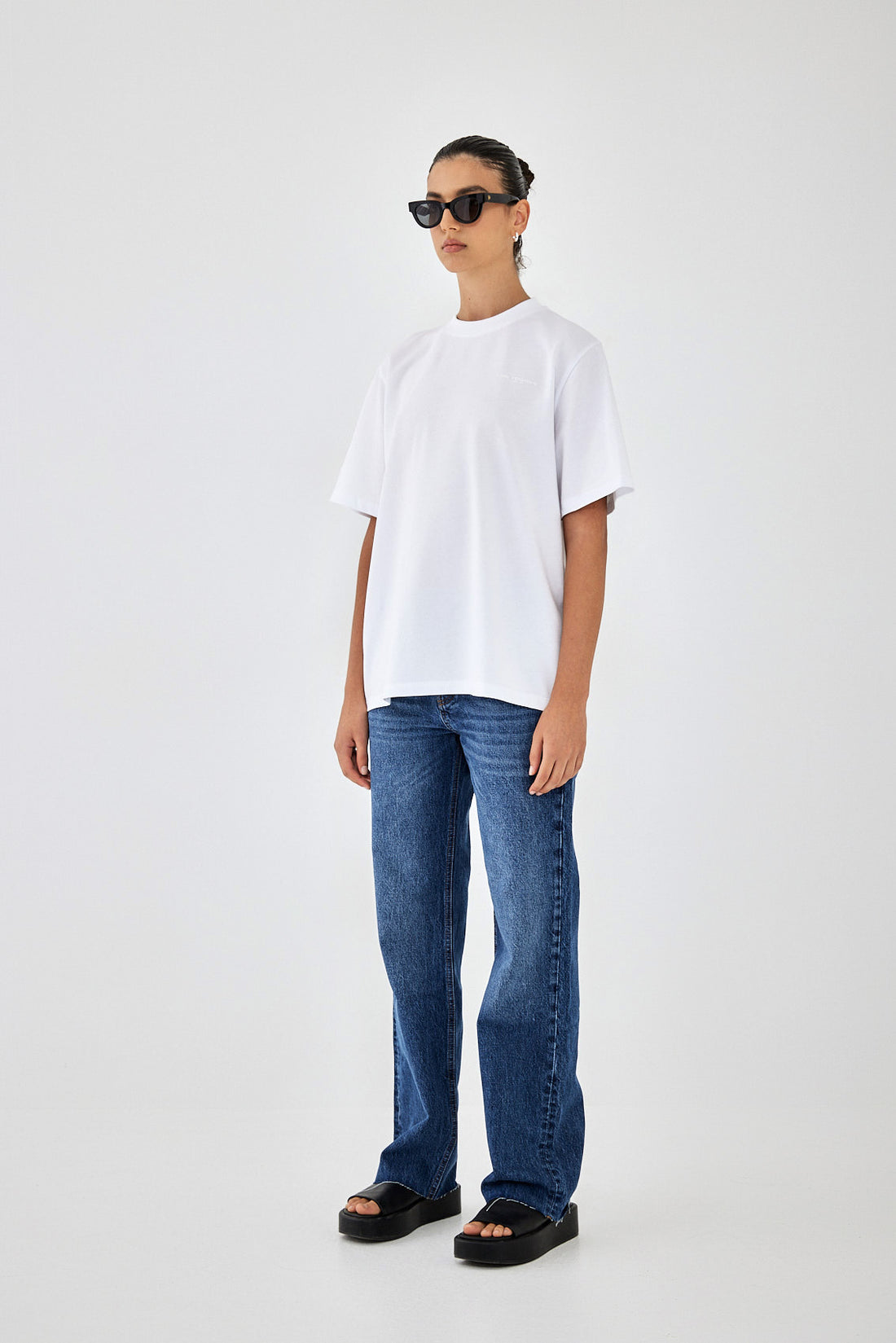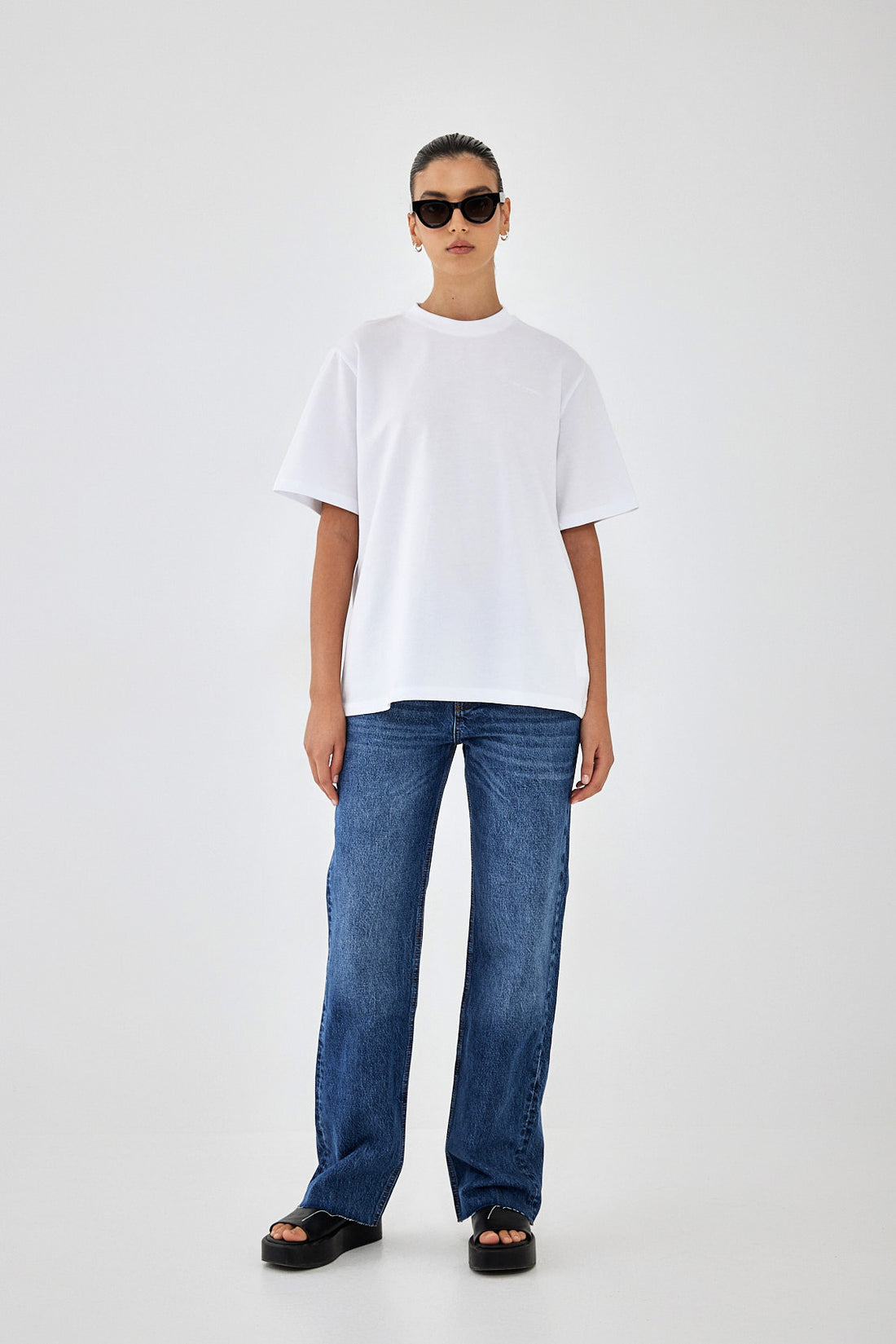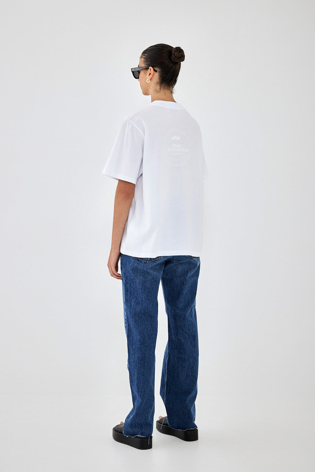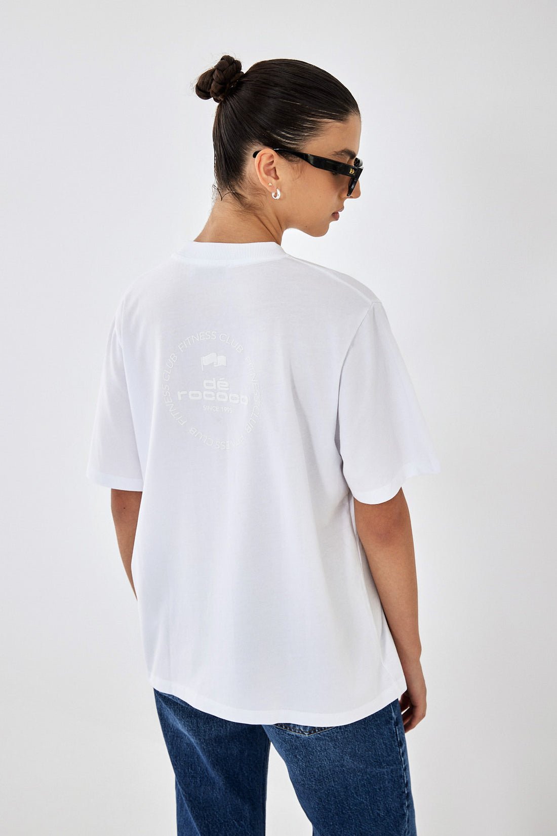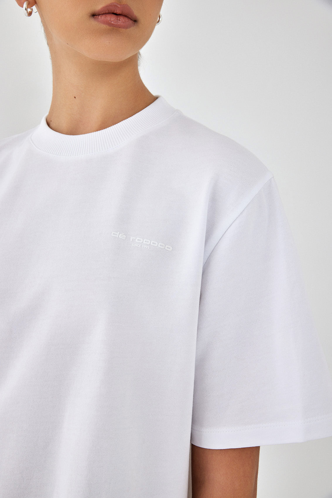 The perfect addition to your active wardrobe. T shirts in matching colors to the active sets, perfect for layering. Ribbed crew neckline. French terry. Delicate tone on tone rubber print on the front and back. Oversized fit, sits loosely on the body. Style it with the matching joggers to complete the set.