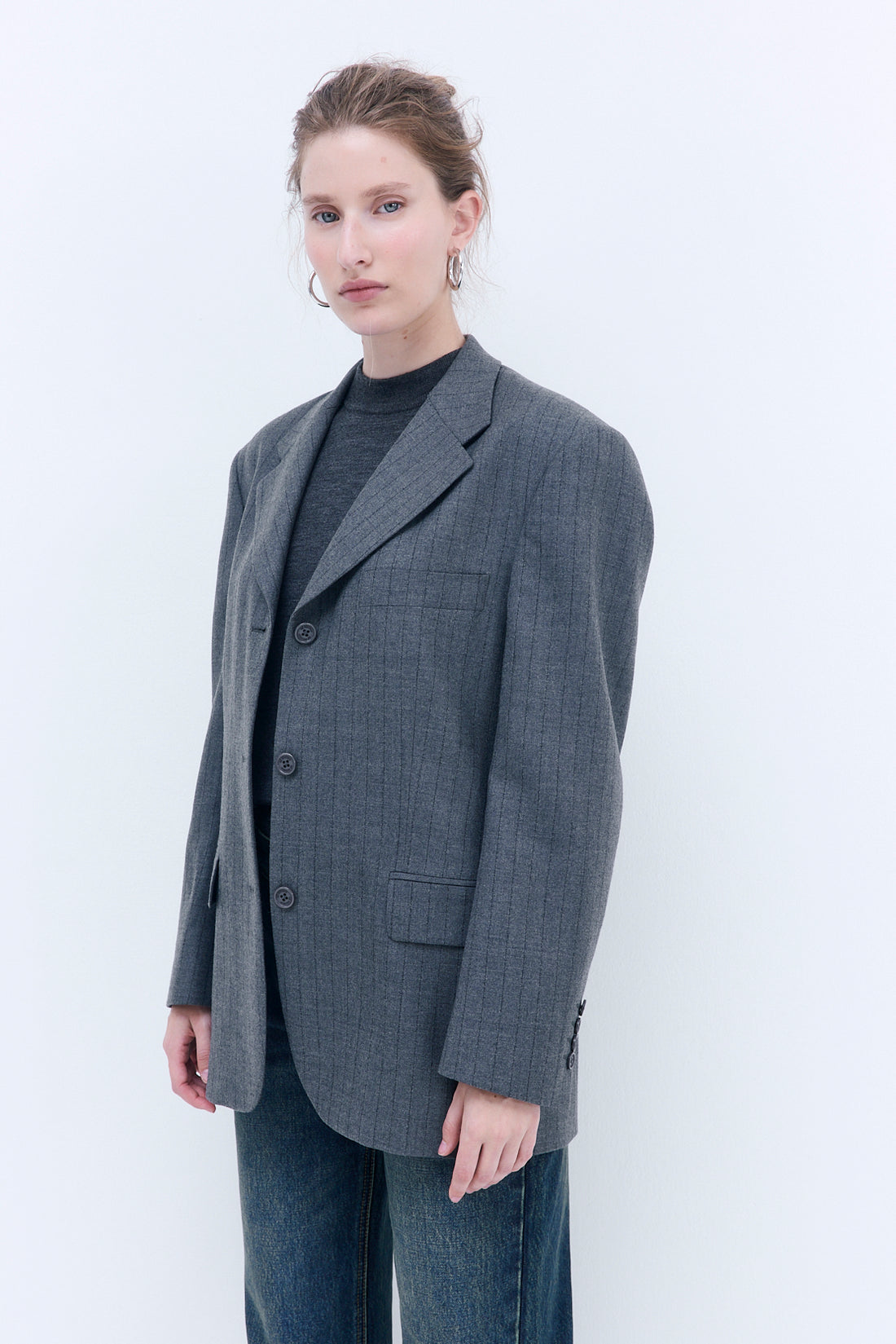 Welcoming new, timeless pieces to our iconic Daddy collection. A classic blazer, crafted from luxurious, cozy wool. Oversized fit. Complete with a lapel collar. Featuring two front flap pockets. Tonal buttons with contrast trim edge. Tonal embroidered logo. Fully lined. Detailed with two inside pockets. Wear it with our new, stylish Tapered Leg Wool Daddy Pants and sleek Yvon Shoulder Bag for a refined look.