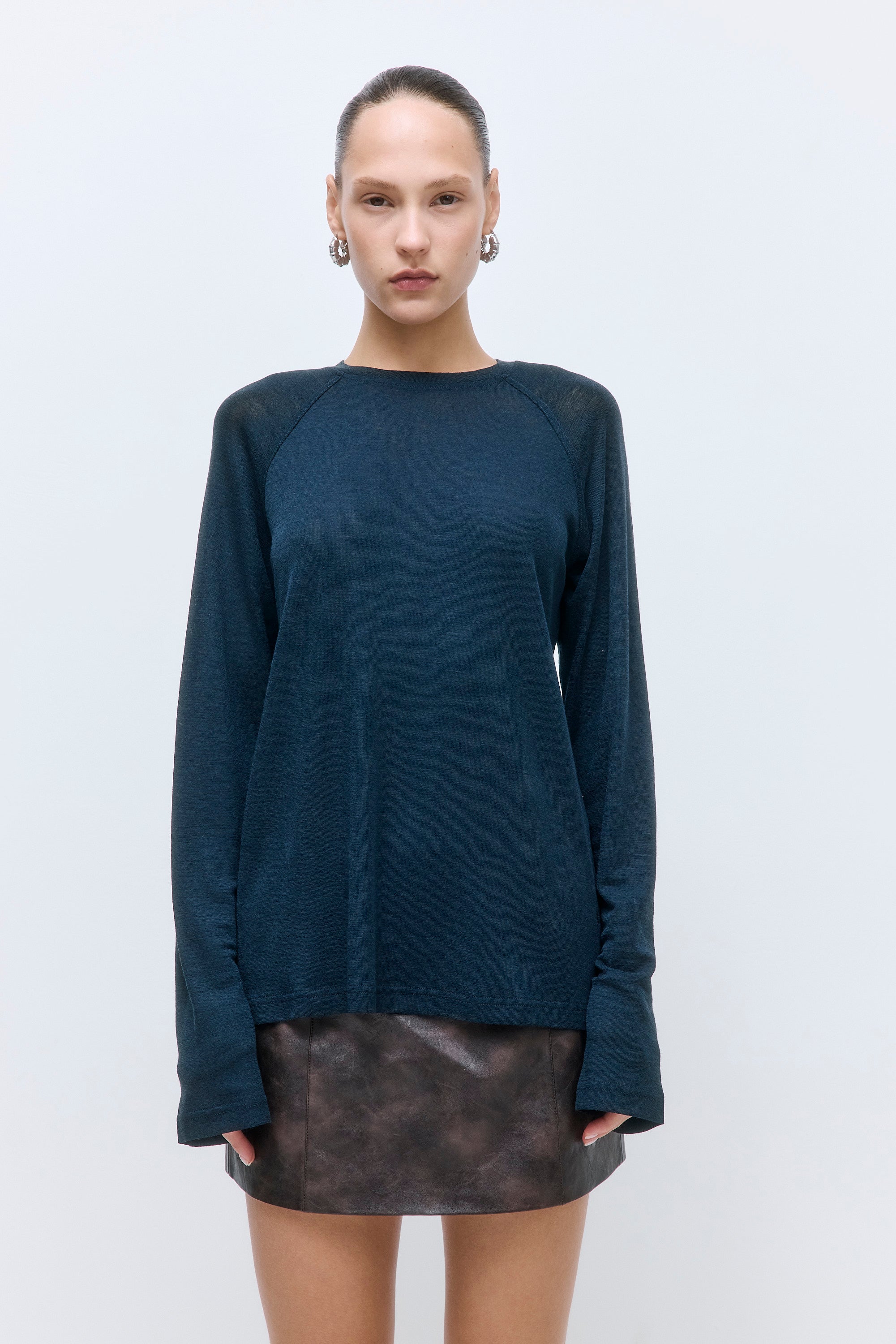When effortless comfort meets everyday style. Featuring soft, cloud-like fabric. Crew neck. Oversized fit. Long, raglan sleeves that flare out a bit. Seam detailing along the center back. Featuring a tonal embroidered logo at the front. Layer it with our iconic Oversized Crew Neck Jumper and timeless Stretchy Bootcut Pants for the ultimate everyday, cozy look.