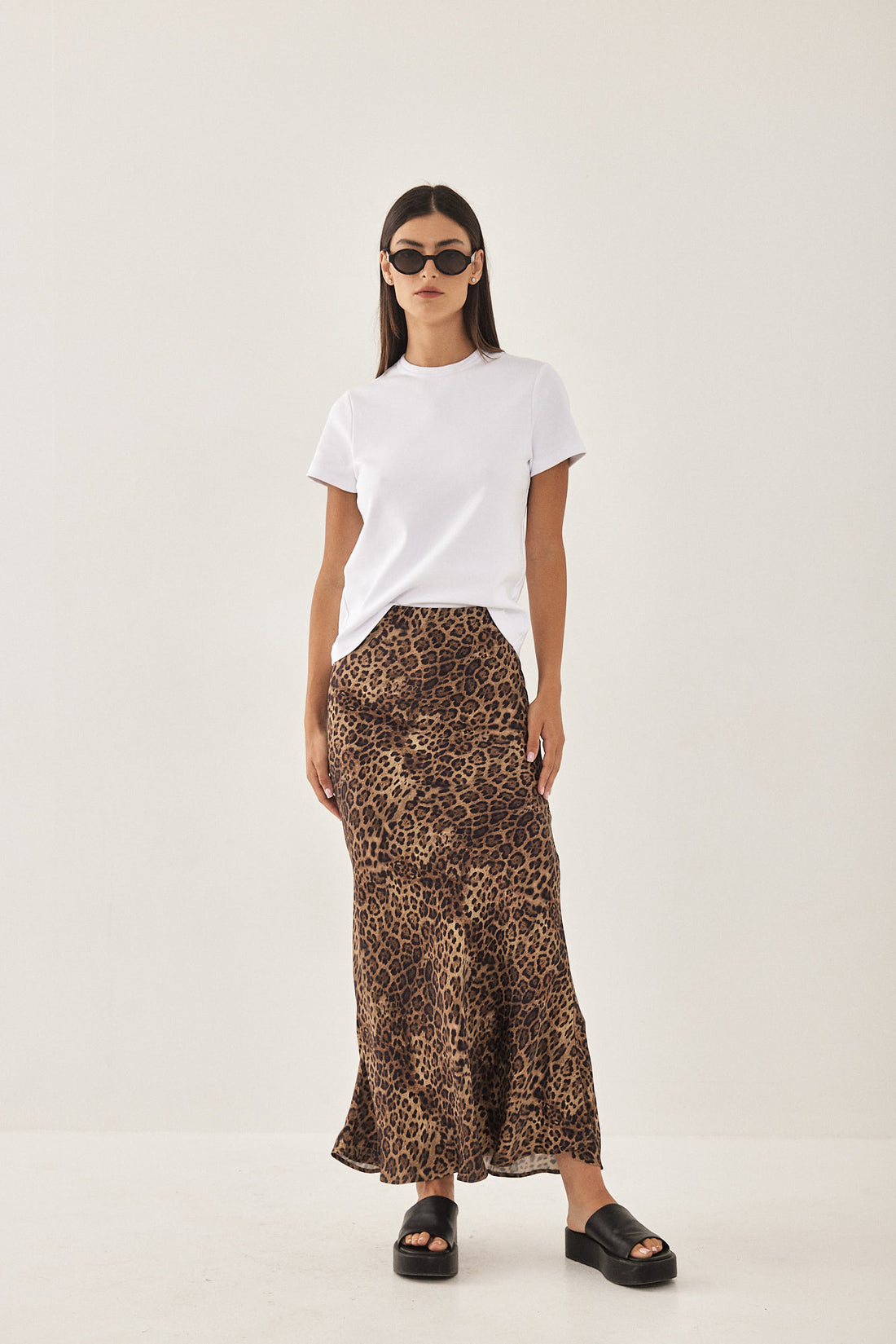 Satin slip midi skirt. Features a high waisted fit and an inner elastic waistband. Lightweight breathable material. Cut in a special bias cut technique so that the materials falls smoothly and moves with your body. Style it with a basic tank top and a pair of loafers for an effortlessly classy look.