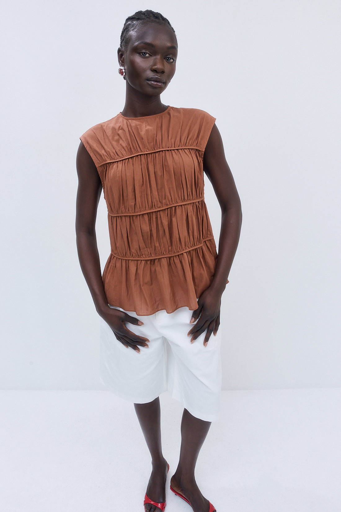 Semi Sheer Sleeveless Pleated Top