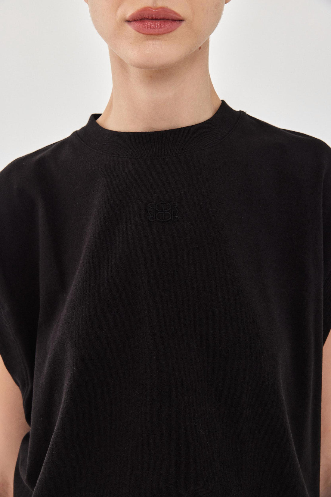 A must have top for transition season, perfect for layering. Crewneck ribbed top. Sleeveless. Cropped silhouette. Embroidered ton sur ton logo on the front. Style it with your favorite daddy bottom, a Croco belt and a kitten heel for the perfect outfit transcending seasonality.