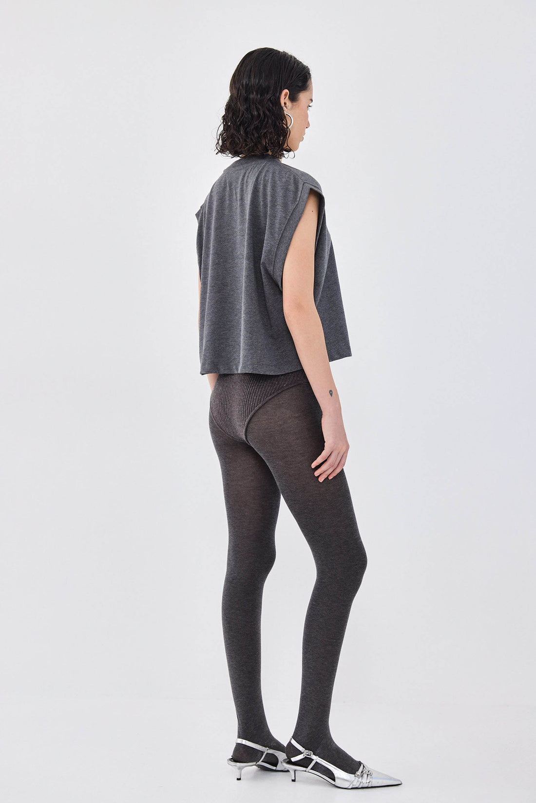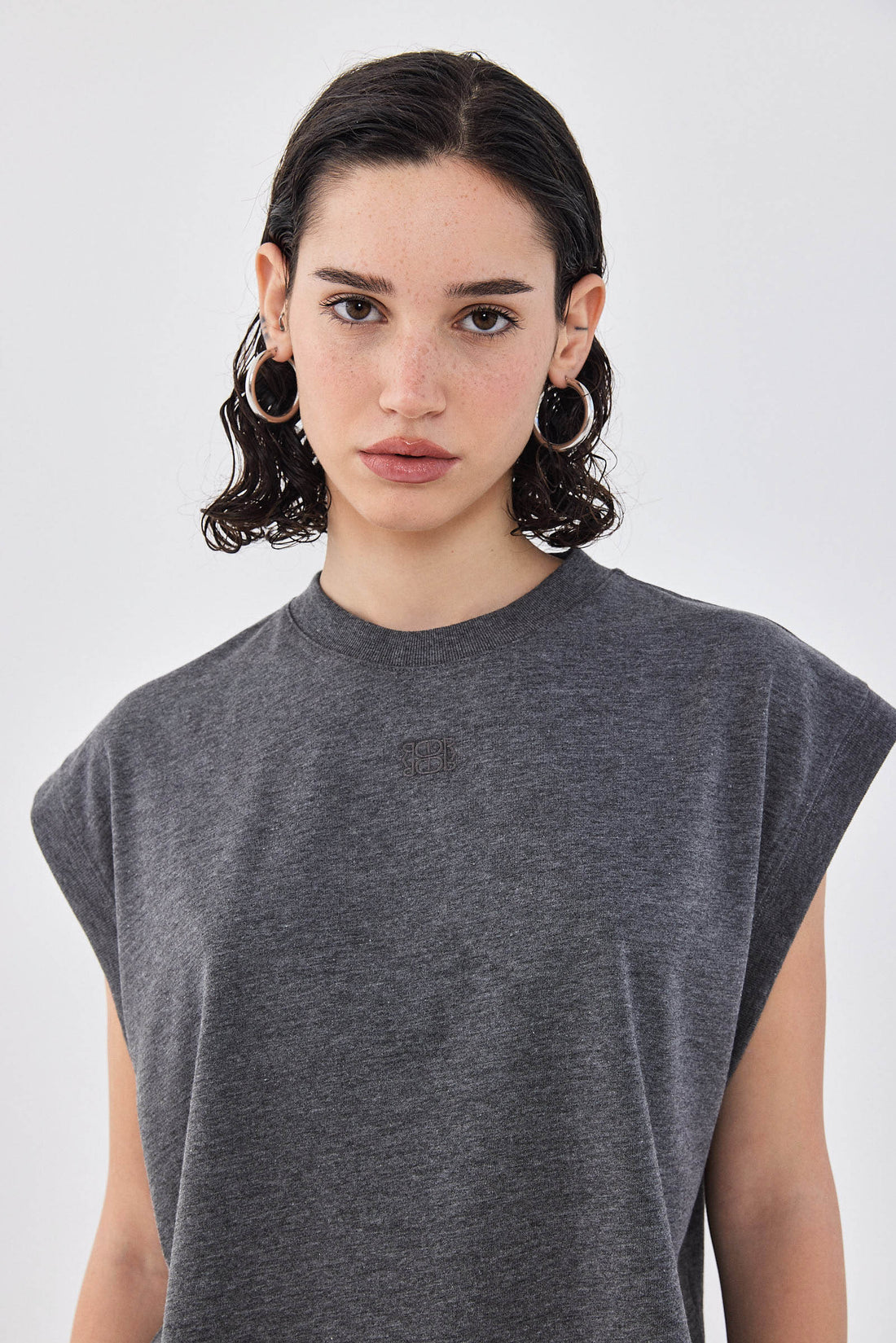 A must have top for transition season, perfect for layering. Crewneck ribbed top. Sleeveless. Cropped silhouette. Embroidered ton sur ton logo on the front. Style it with your favorite daddy bottom, a Croco belt and a kitten heel for the perfect outfit transcending seasonality.