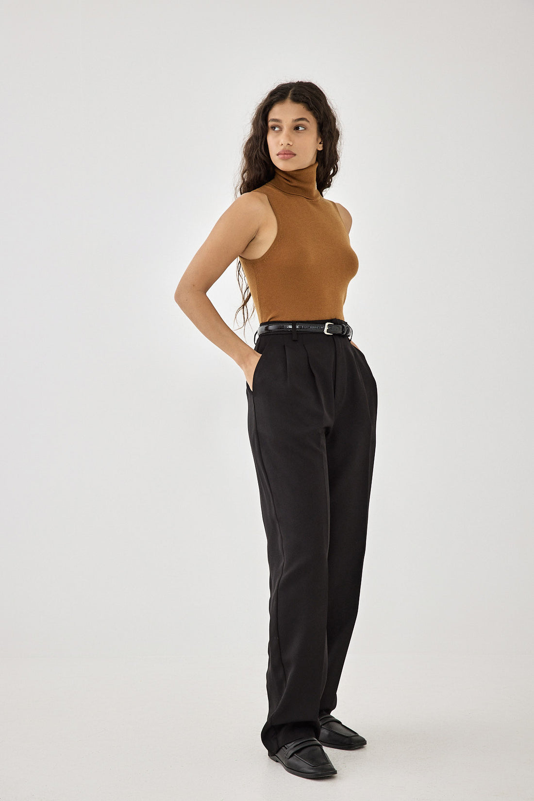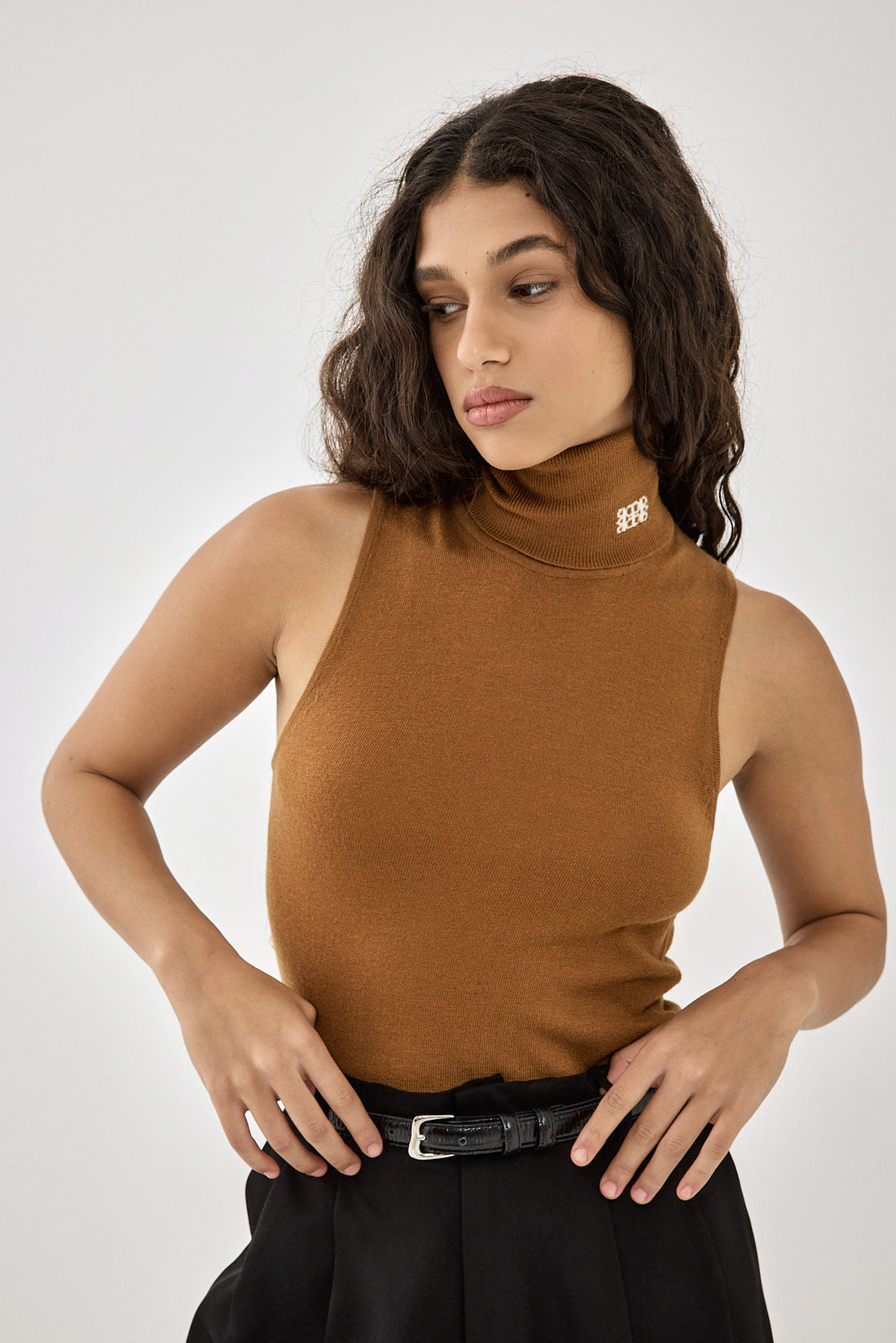 A spring wardrobe essential. Lightweight sleeveless turtleneck. Made from the softest material. Intarsia contrast logo detailing. Style it with your favorite pair of daddy trousers and Croco belt for a sophisticated everyday look.