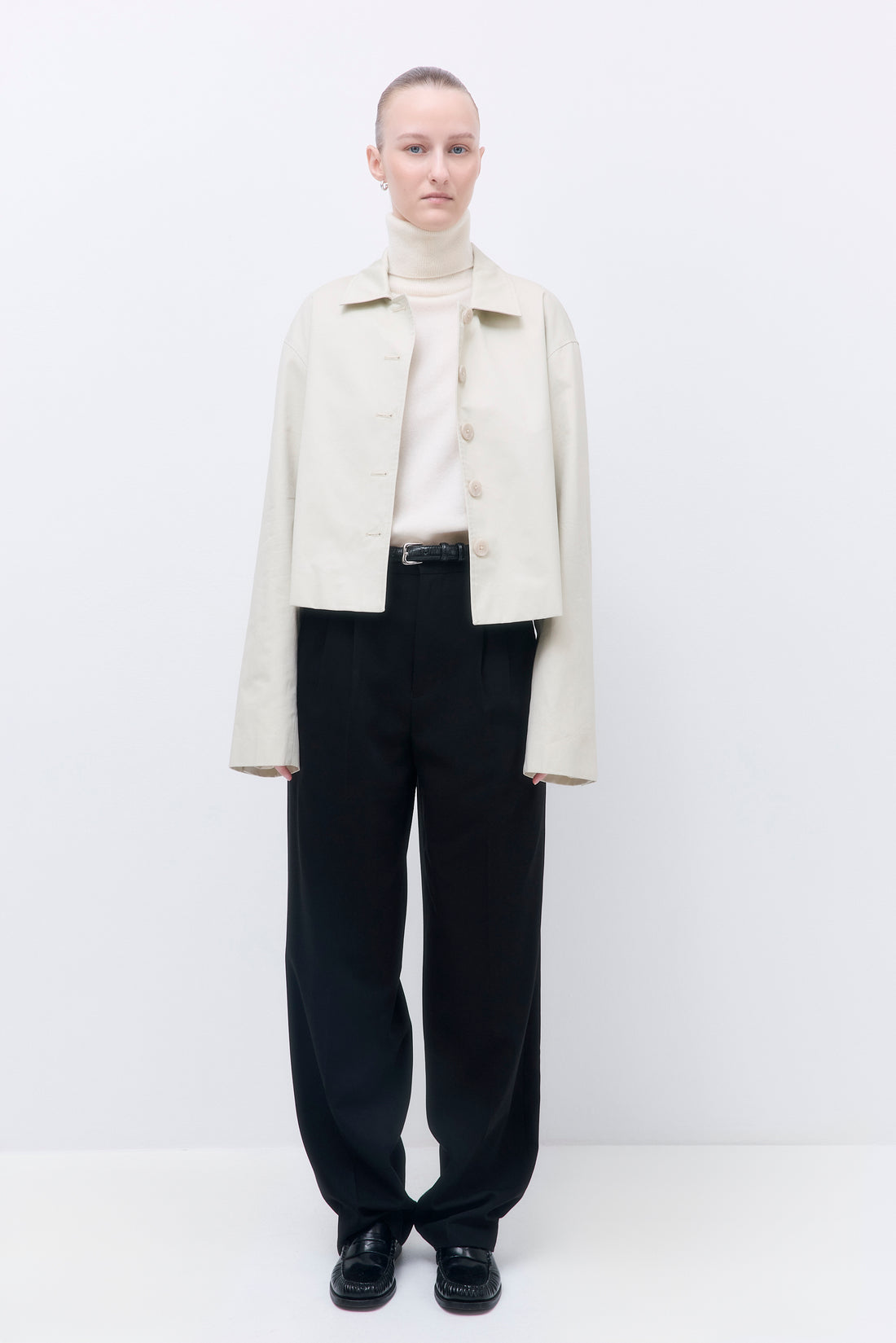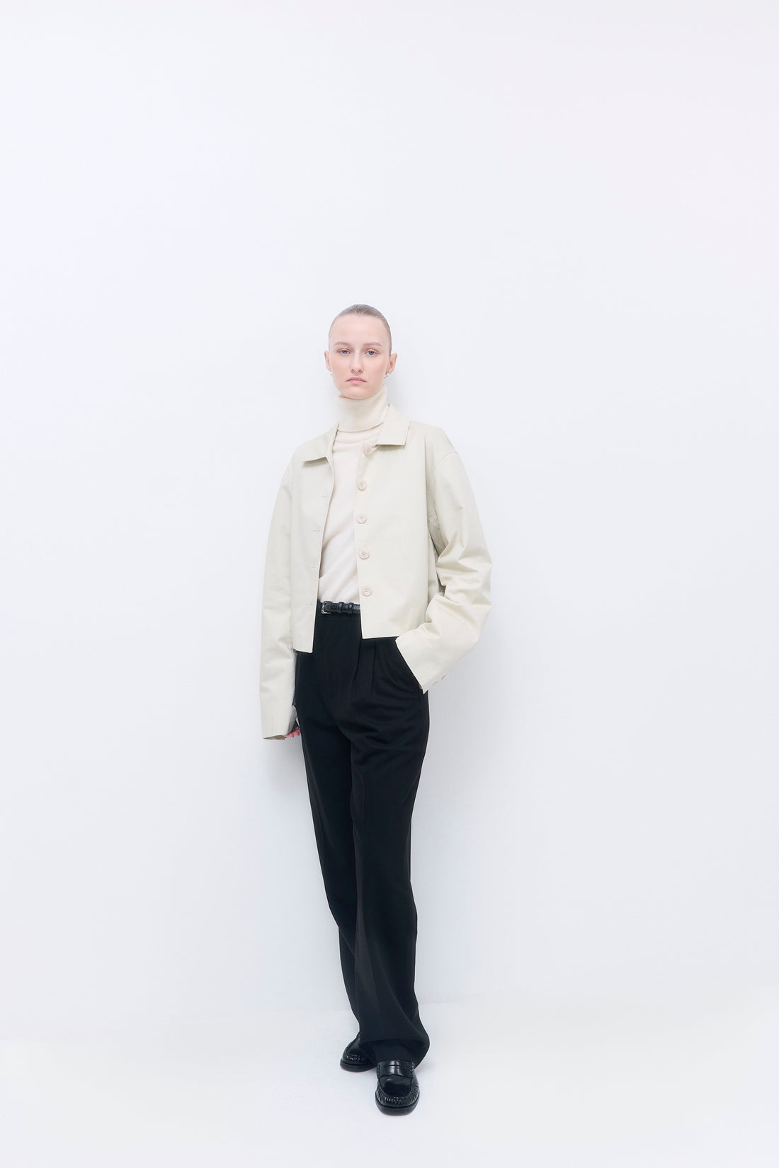 Crisp, tailored, and perfectly cropped; your new season staple. Straight silhouette. Cropped fit. True to size. Fully lined. Featuring tonal, logo engraved buttons along the jacket and on the sleeves. Back slit. Detailed with a tonal embroidered logo on the cuff. Style it with our new Signature Flower Scarf and our iconic Stretchy Bootcut Pants for an effortless look.