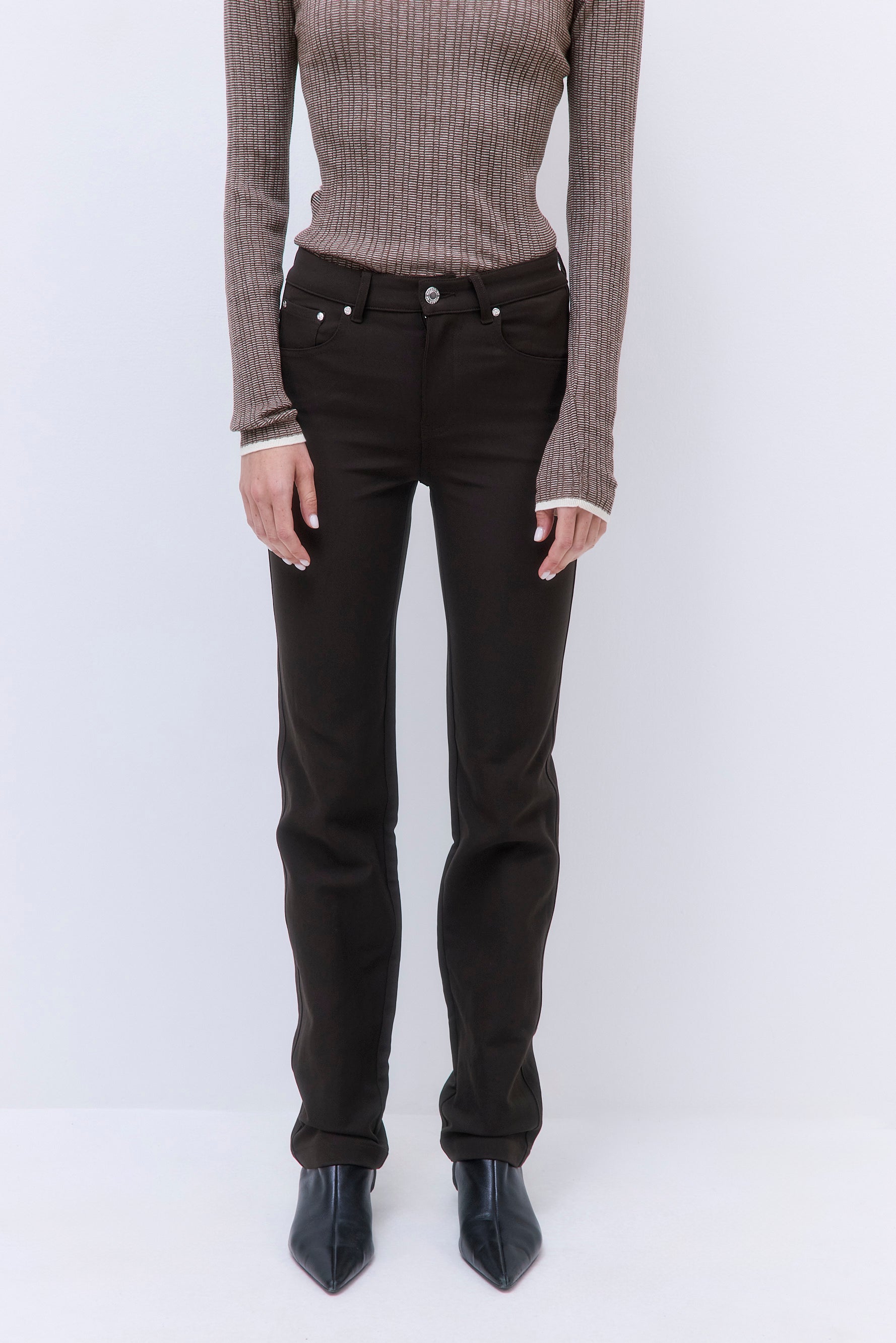 The perfect balance of sleek and effortless ease. Fitted straight leg pants. Front side pockets, featuring a coin pocket. Back pocket. Detailed with tonal De Rococo patch detail. Back yoke. Embroidered tonal logo. Pair it with our new Soft Ribbed Crew Neck and accessorise with our refined Rodika Tote Bag for the ultimate elevated look.