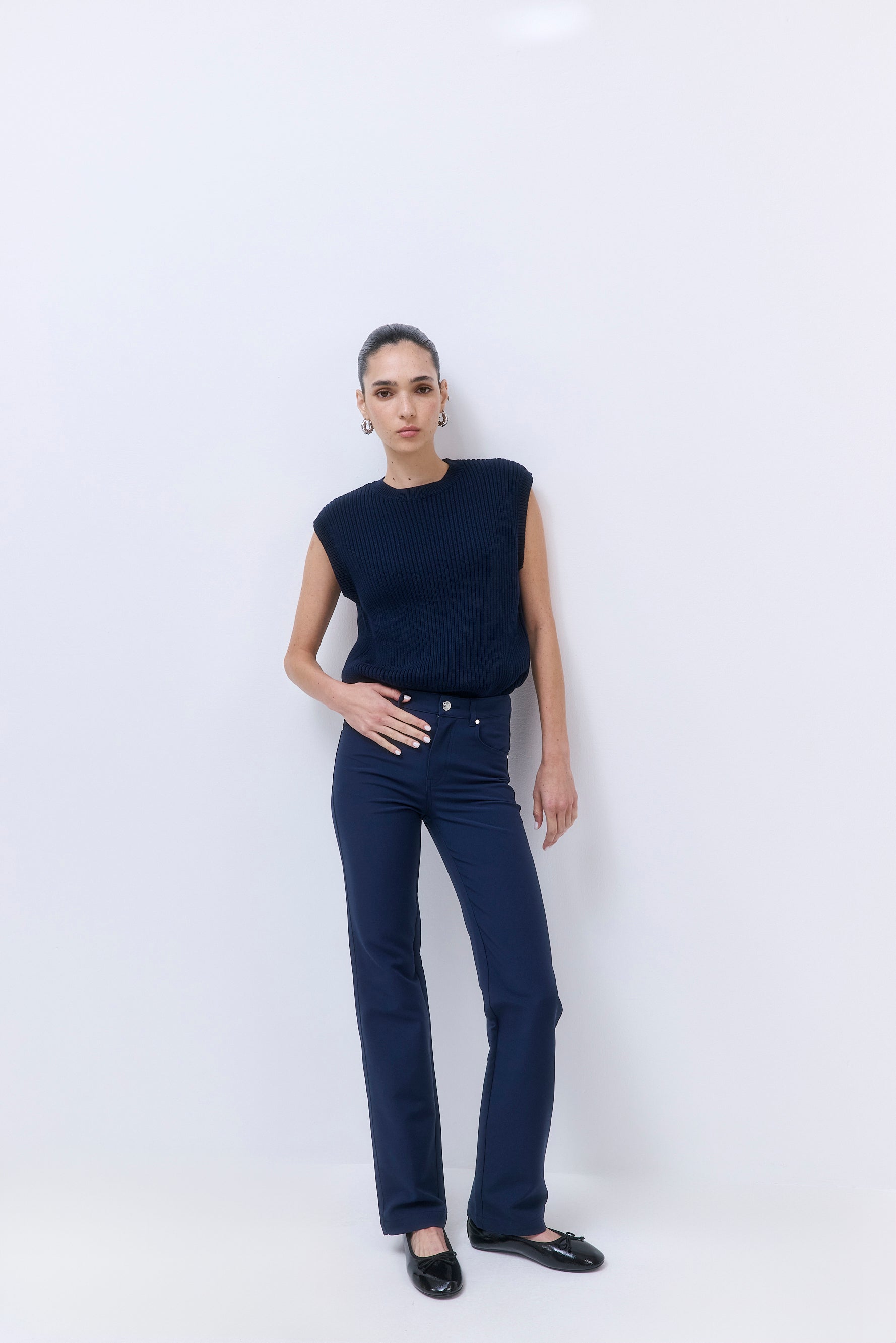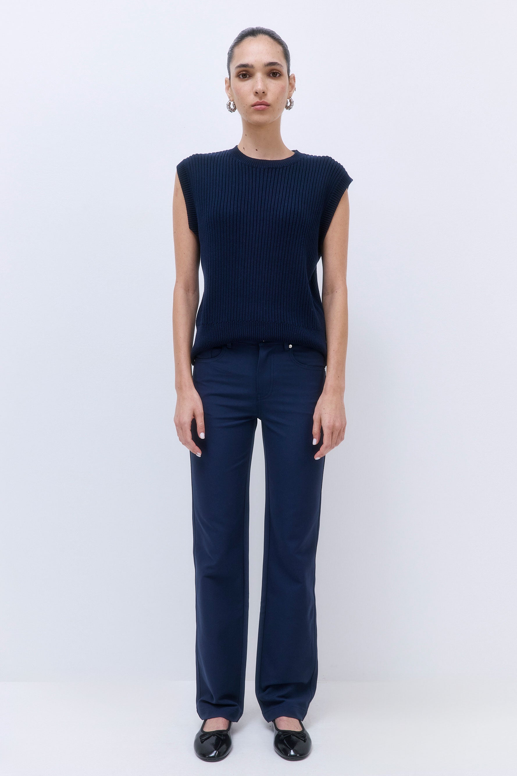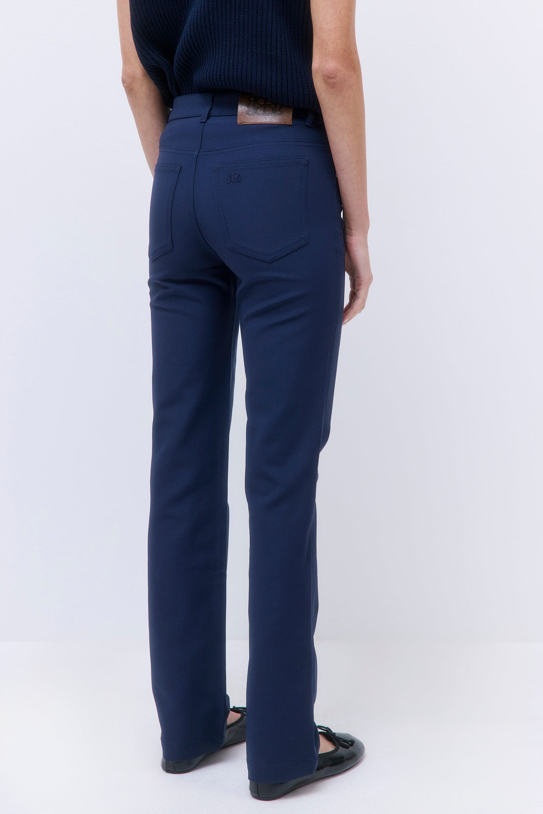 The perfect balance of sleek and effortless ease. Fitted straight leg pants. Front side pockets, featuring a coin pocket. Back pocket. Detailed with tonal De Rococo patch detail. Back yoke. Embroidered tonal logo. Pair it with our new Soft Ribbed Crew Neck and accessorise with our refined Rodika Tote Bag for the ultimate elevated look.