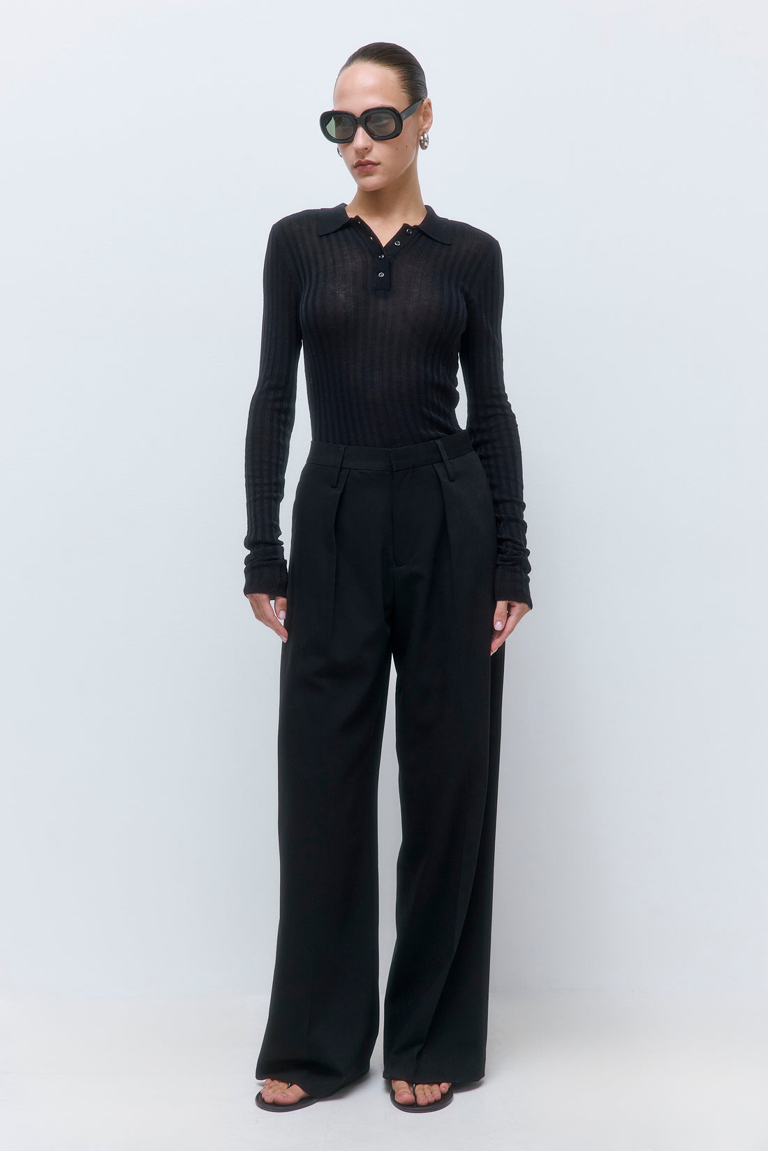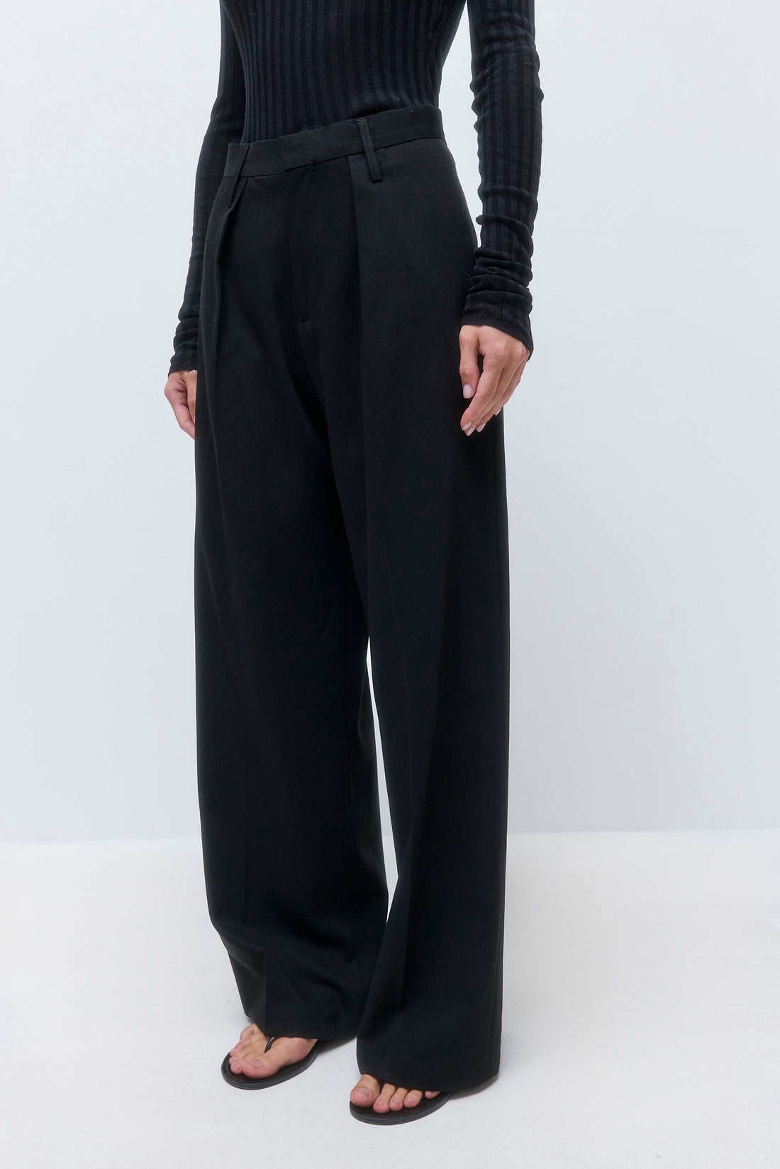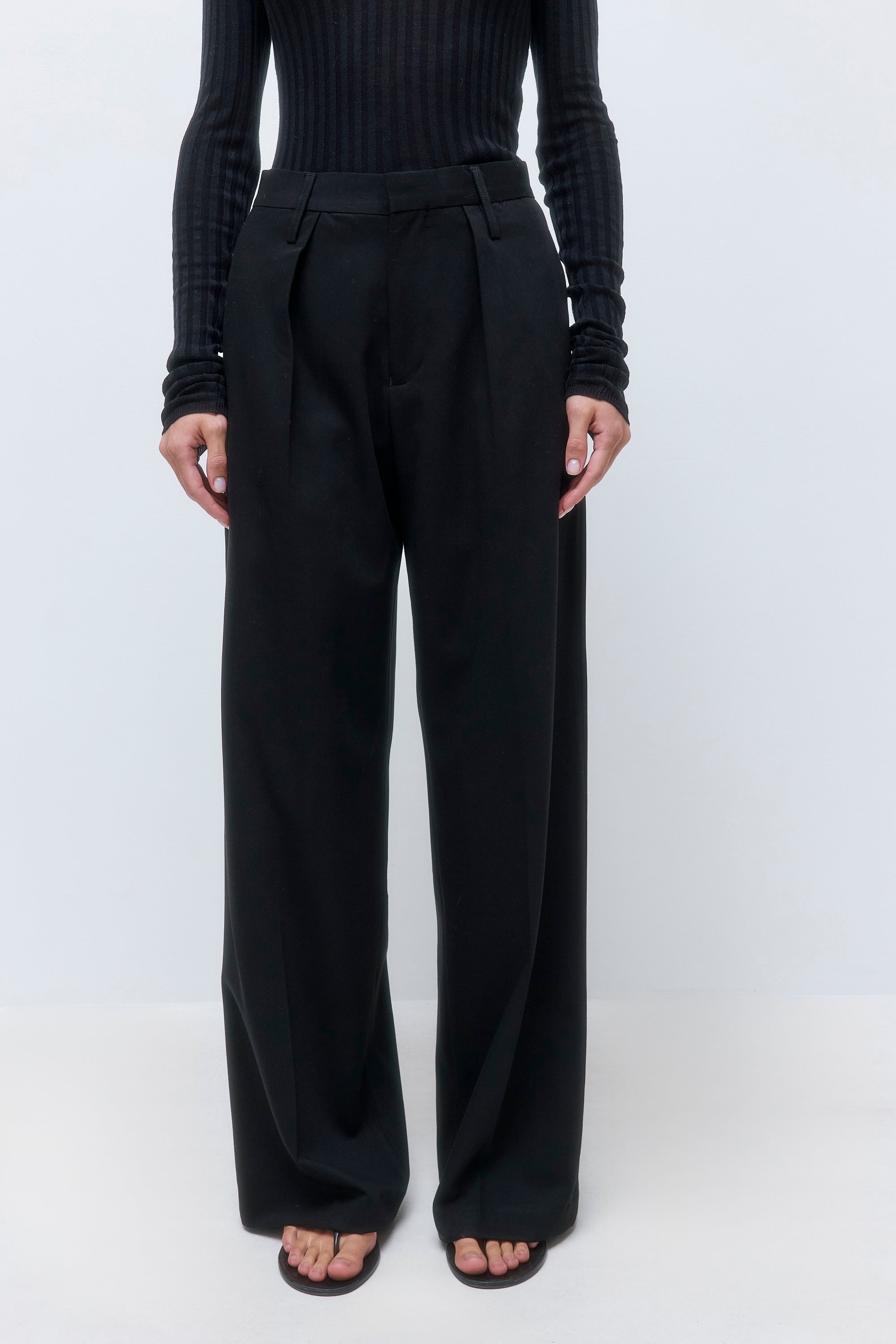 Welcoming new, timeless pieces to our iconic Daddy collection. A winter essential made to elevate every look. Waistband featuring an inner belt structure for a refined, tailored fit. Full length. Mid waisted. Front pleat. Side pockets. Clean finishes. Wide leg. Delicate belt loops. Tonal logo embroidery at the side back. Style it with our effortless Sheer Baby Tee and iconic Rodika Tote Bag for an elevated look.