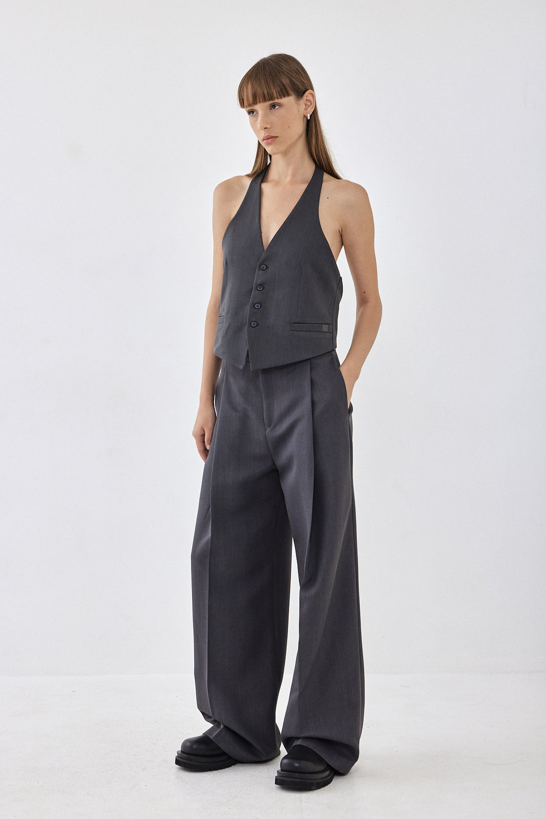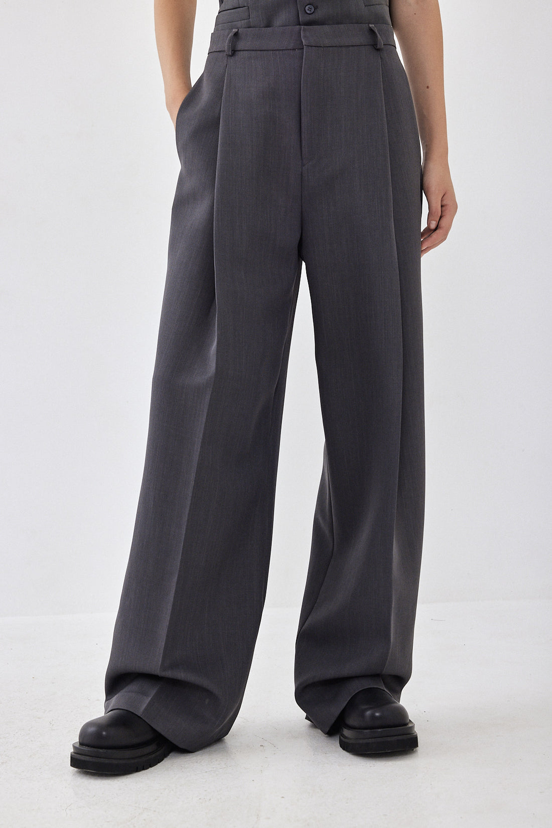 High waisted tailored pants with an extra wide silhouette. Non-stretch lightweight woven fabric. Featuring belt loops. Front zip and metal hook closure. Style it with your favorite basic tee and a pair of sandals for an ultra-chic everyday look.