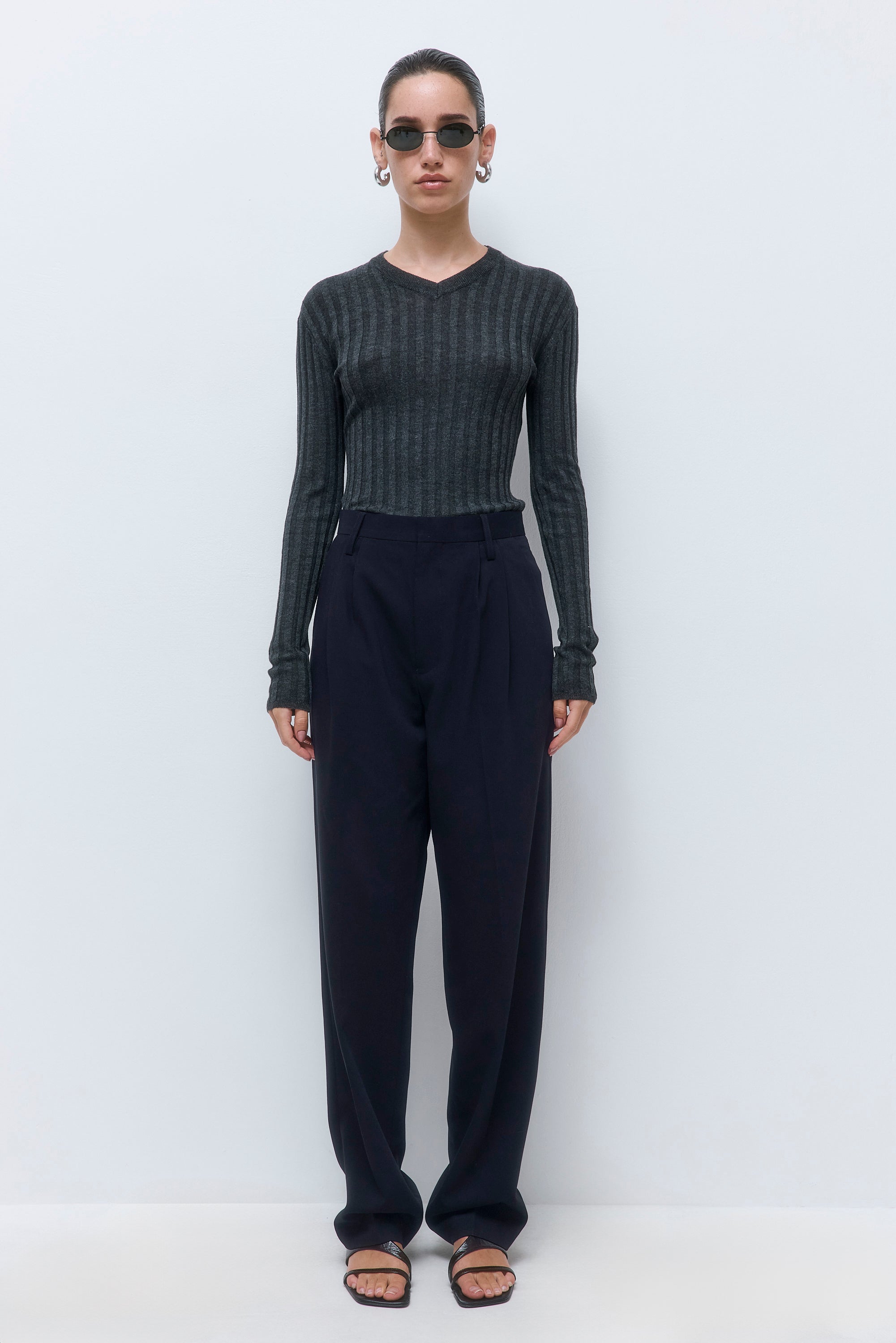 Welcoming new, timeless pieces to our iconic Daddy collection. The ultimate day-to-night pant. High waisted. Tapered leg. Full length pant. Featuring two front pleats. Two side pockets. Zipper closure with inner hook. Half-lined. Tonal embroidered logo on the back. Includes back pockets. Style it with our luscious Classic Long Sleeve T Shirt and our sleek new Double Breasted Daddy Blazer for a sophisticated, yet comfortable look.