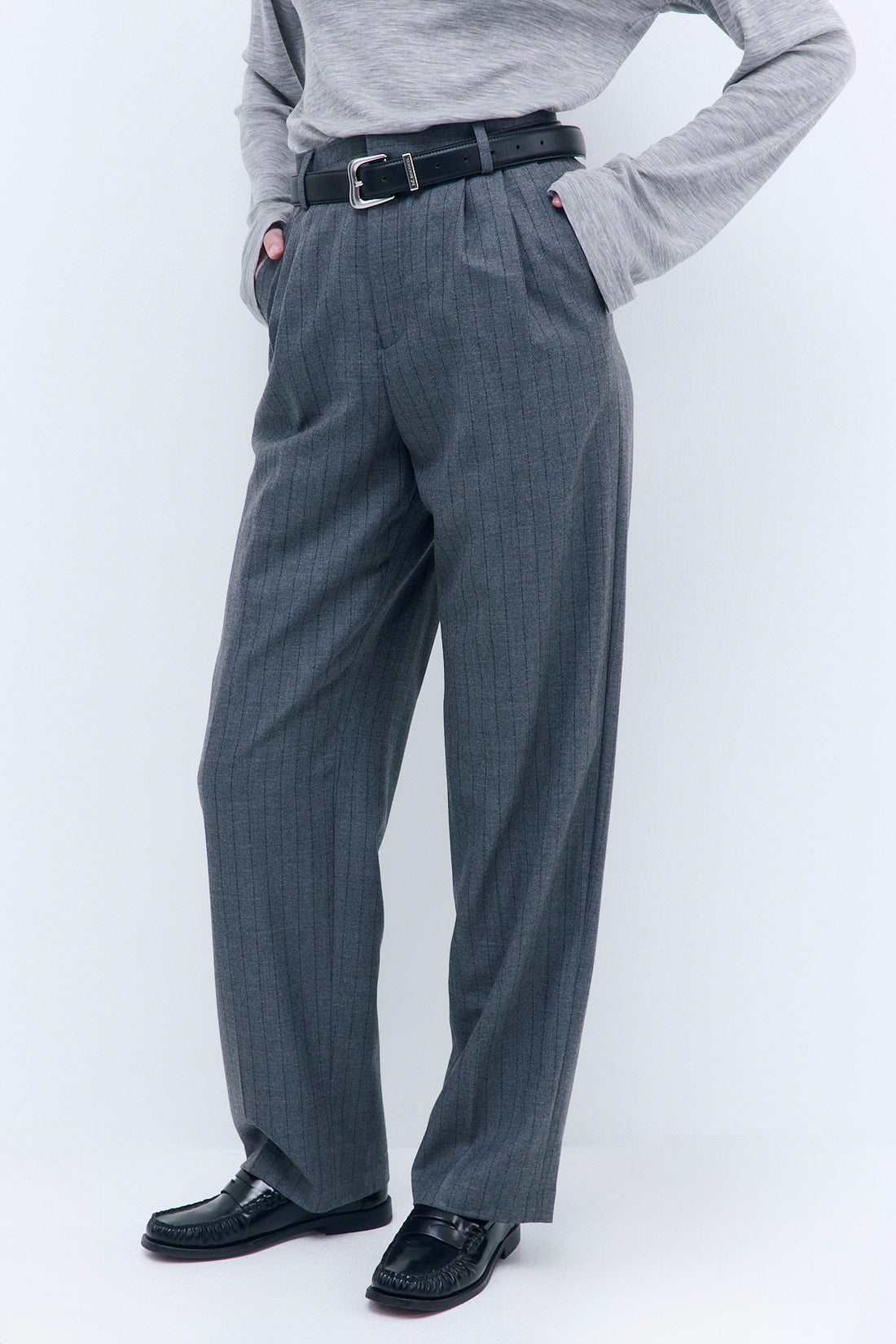 Welcoming new, timeless pieces to our iconic Daddy collection. The ultimate day-to-night pant. Crafted from luxurious, cozy wool. High waisted. Tapered leg. Full length pant. Featuring two front pleats. Two side pockets. Zipper closure with inner hook. Half-lined. Tonal embroidered logo on the back. Includes back pockets. Style it with our luscious Classic Long Sleeve T Shirt and our sleek new Oversized Wool Daddy Blazer for a sophisticated monochromatic look.