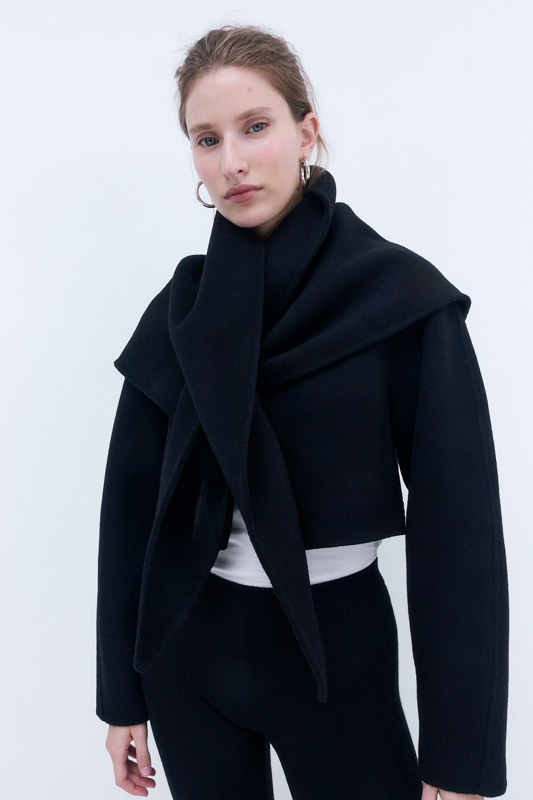 The ultimate winter accessory, made to elevate every look. Double Wool Triangle Scarf, detailed with a clean, subtle side slit for an easy, secure wrap and comfortable wear. Finished with a tonal embroidered logo at the tip. Style it with our iconic Double Wool Cropped Jacket and our cozy Ribbed Leggings for guaranteed comfort all day long.