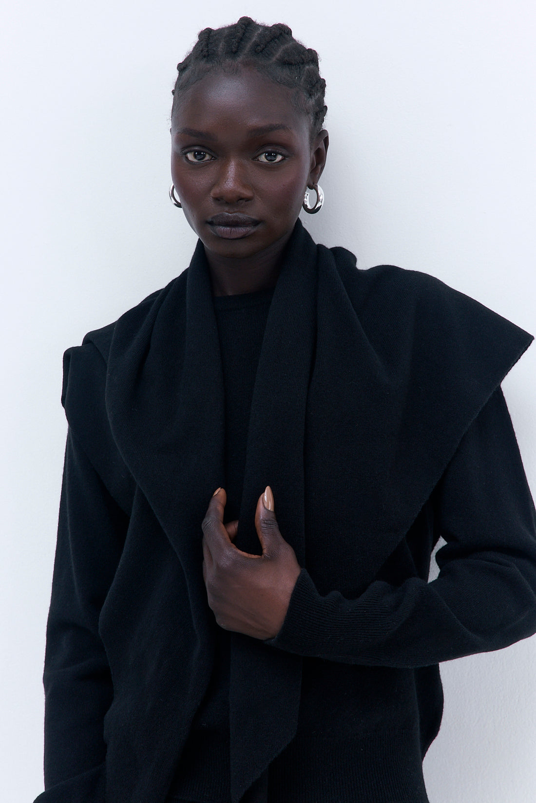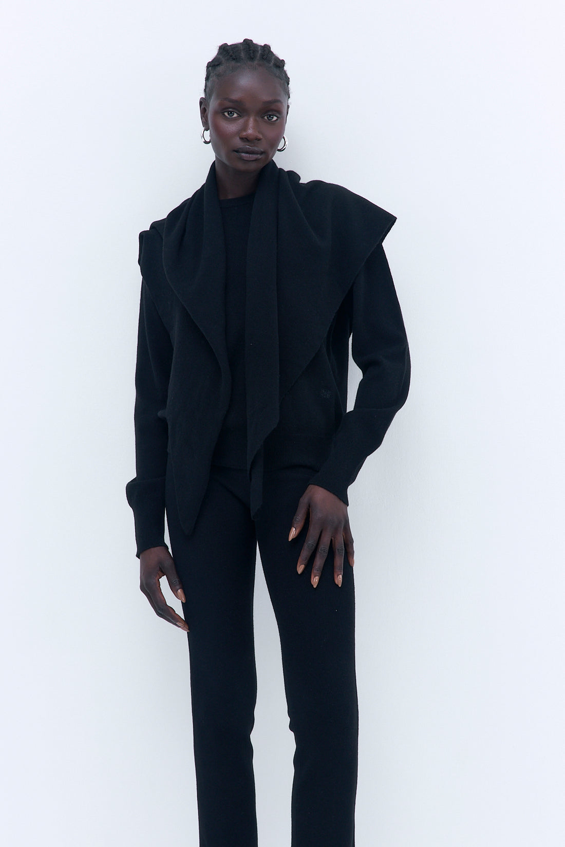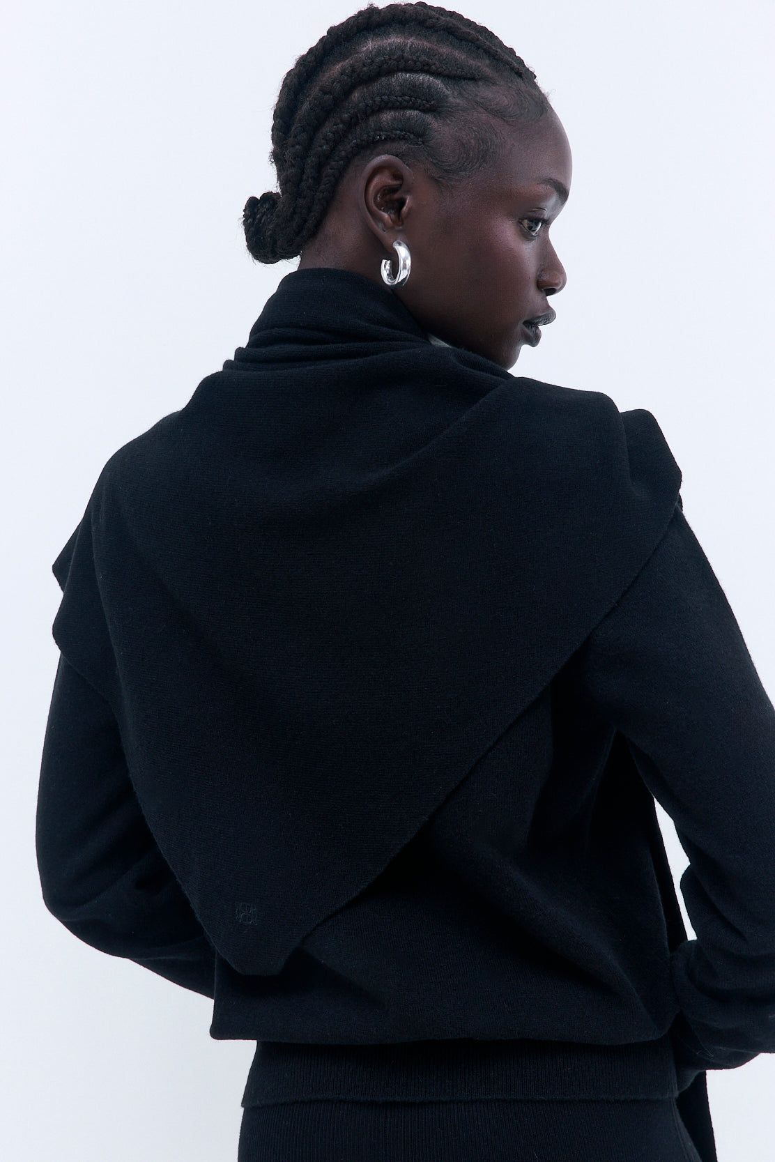 Your new winter must-have: a warm, cozy wool triangle scarf, fully fashioned with a tonal embroidered logo along the edge. Style it with our iconic Oversized Double Breasted Trench Coat and Rodika Tote Bag for an effortless, refined look.