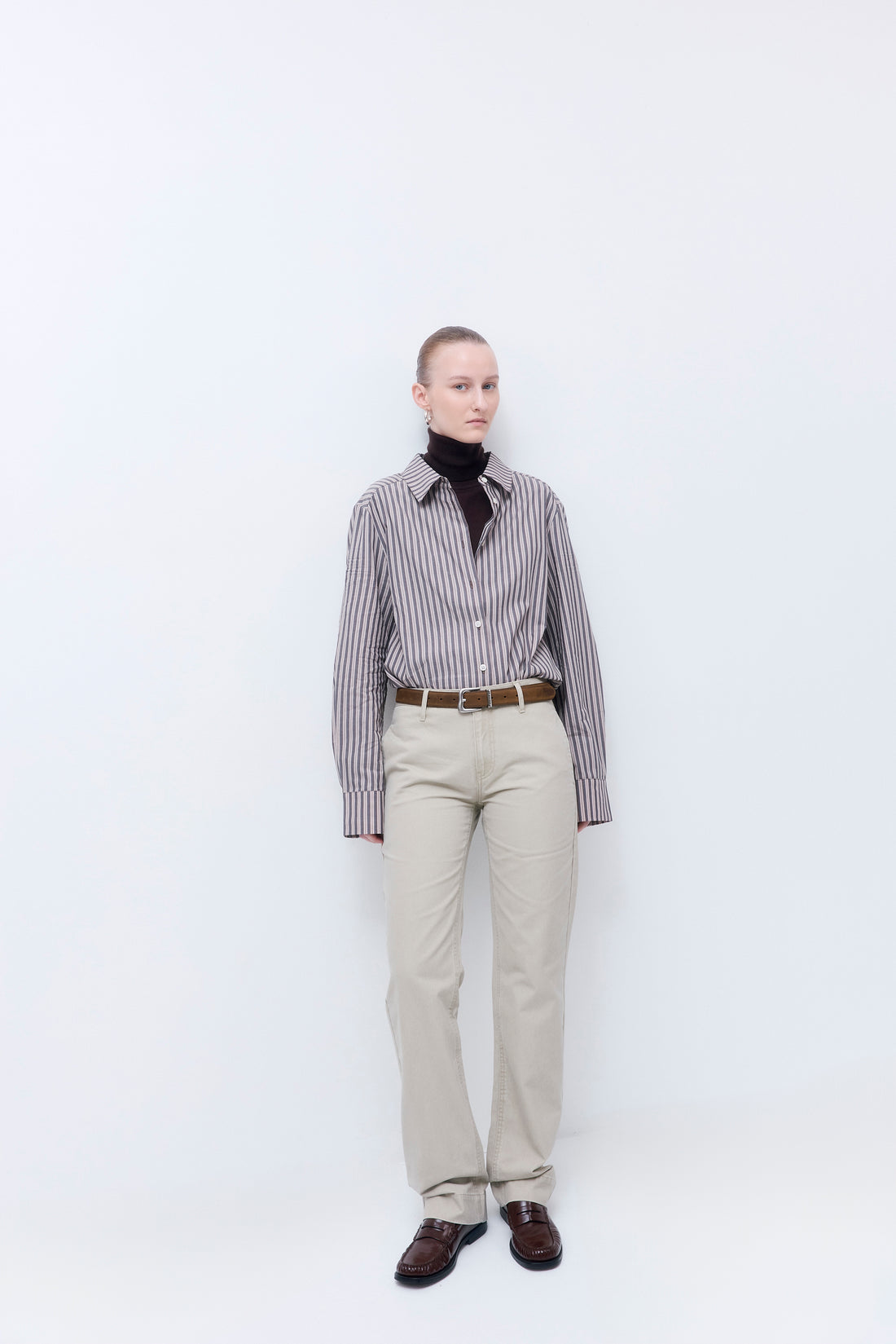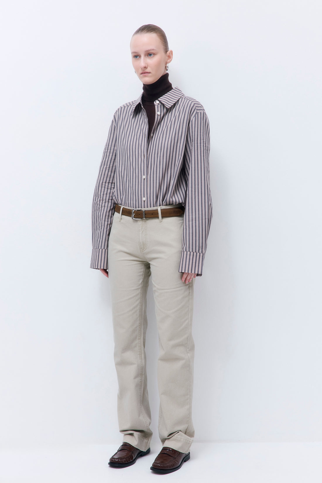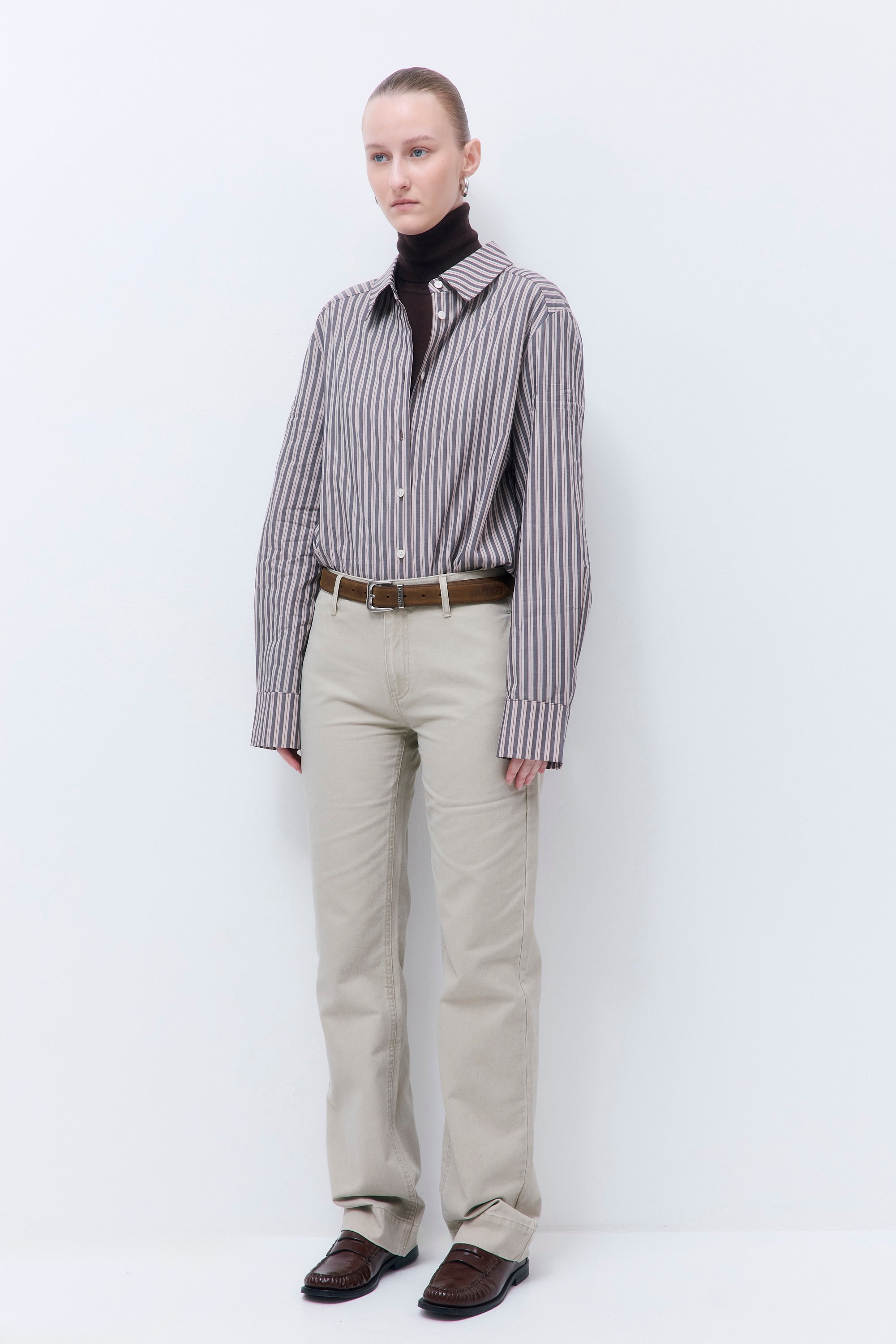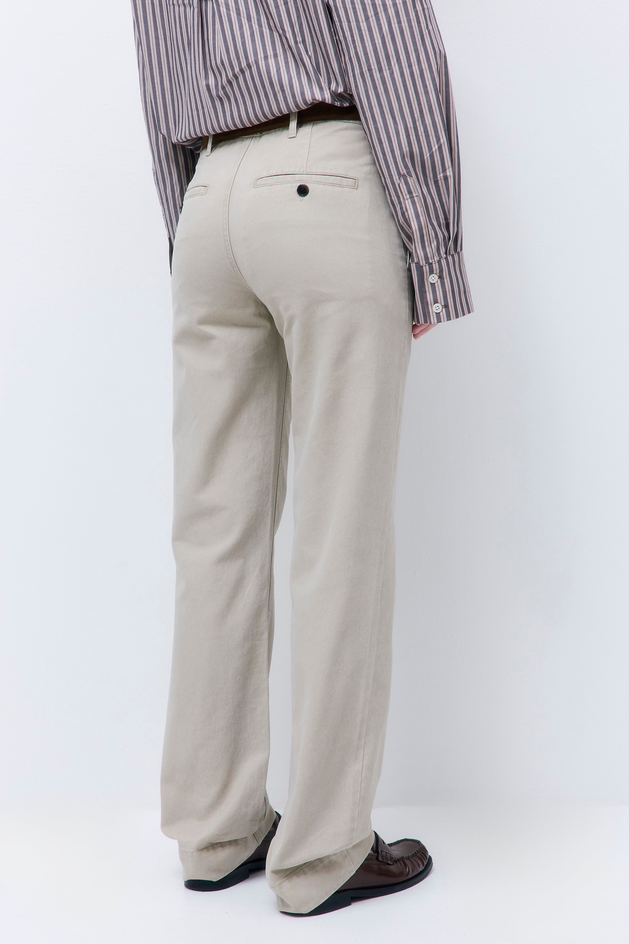 Effortless style, every step of the way. Mid rise, straight leg pants. Detailed with double stitching and side slit pockets. Back welt pockets. Featuring a tonal embroidered logo on the backside, and contrasting, logo engraved buttons. Finished with a concealed hook closure for a seamless front. Pair it with our new, matching Washed Oversized Barn Jacket and our iconic Oval Sunglasses for the ultimate monochromatic look.