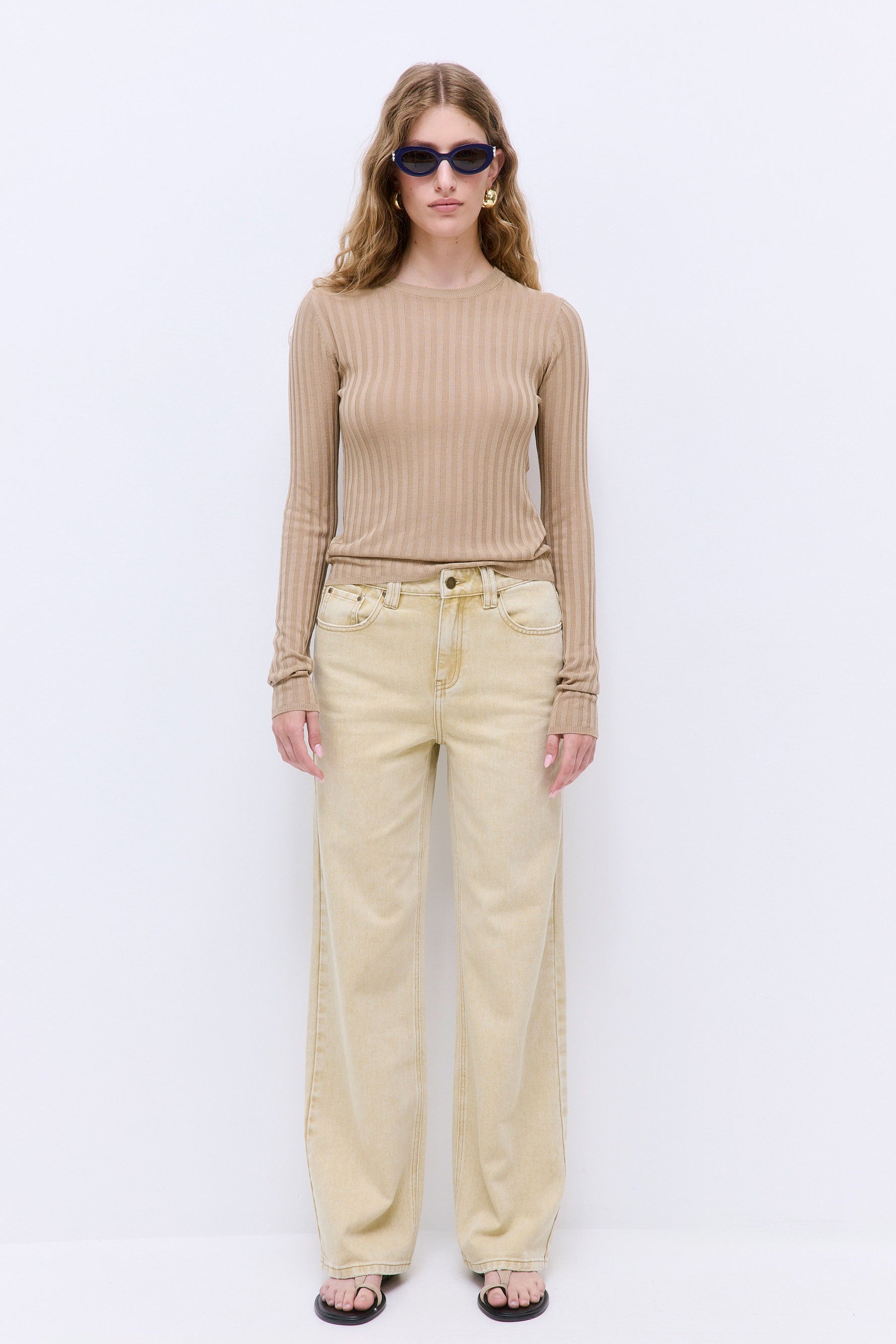 A staple piece for every capsule wardrobe. Ribbed crew neck. Ribbed finish. Slim fit. Full length. Fully fashioned. Clean finishes. Pair it with our stylish Micro Mini Skirt and our sleek Rodika Tote Bag for an everyday effortless look.