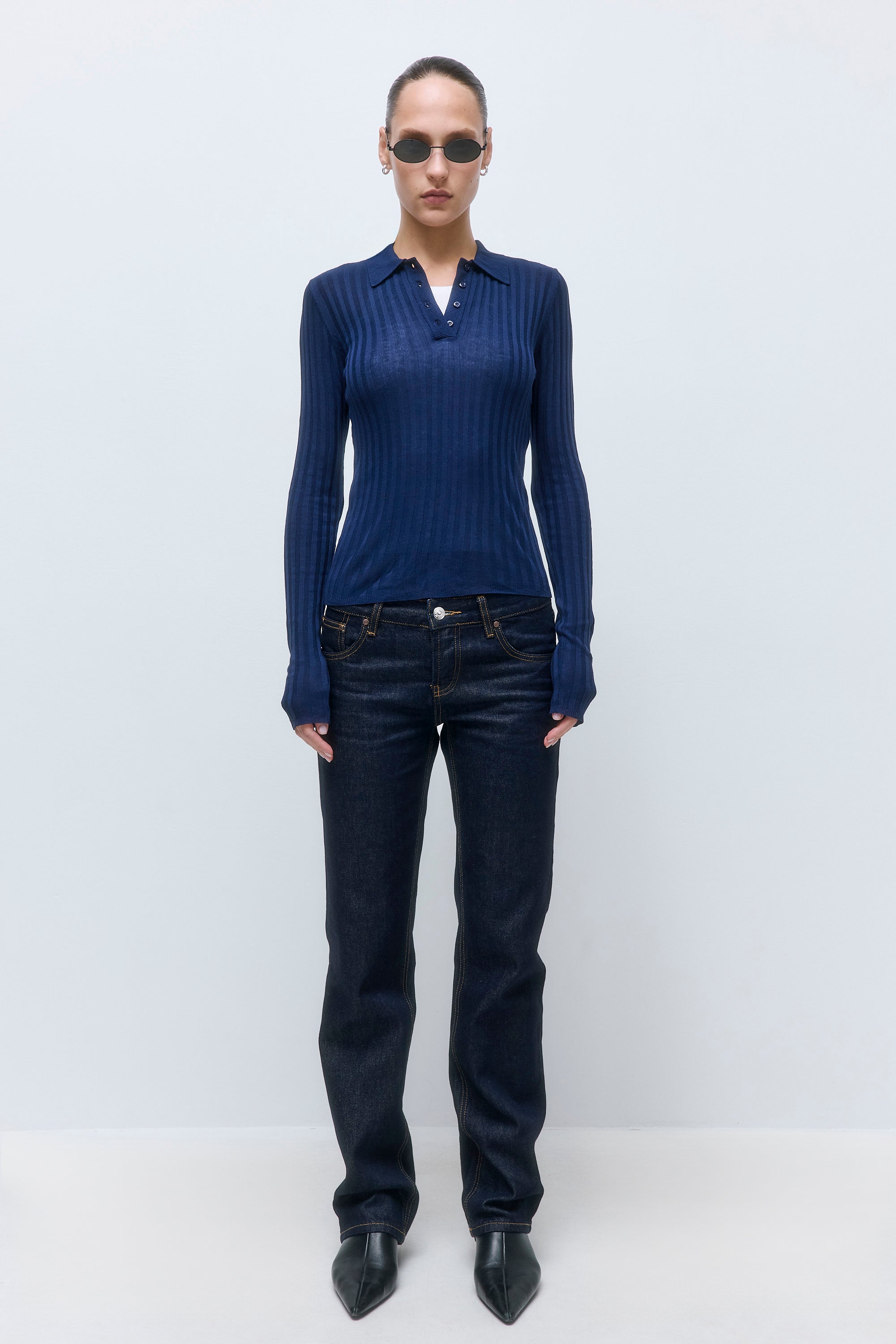 A staple piece for every capsule wardrobe. Polo neckline. Features 4 tonal buttons. Ribbed finish. Slim fit. Full length. Fully fashioned. Clean finishes. Pair it with our stylish Micro Mini Skirt and our sleek Rodika Tote Bag for an everyday effortless look.