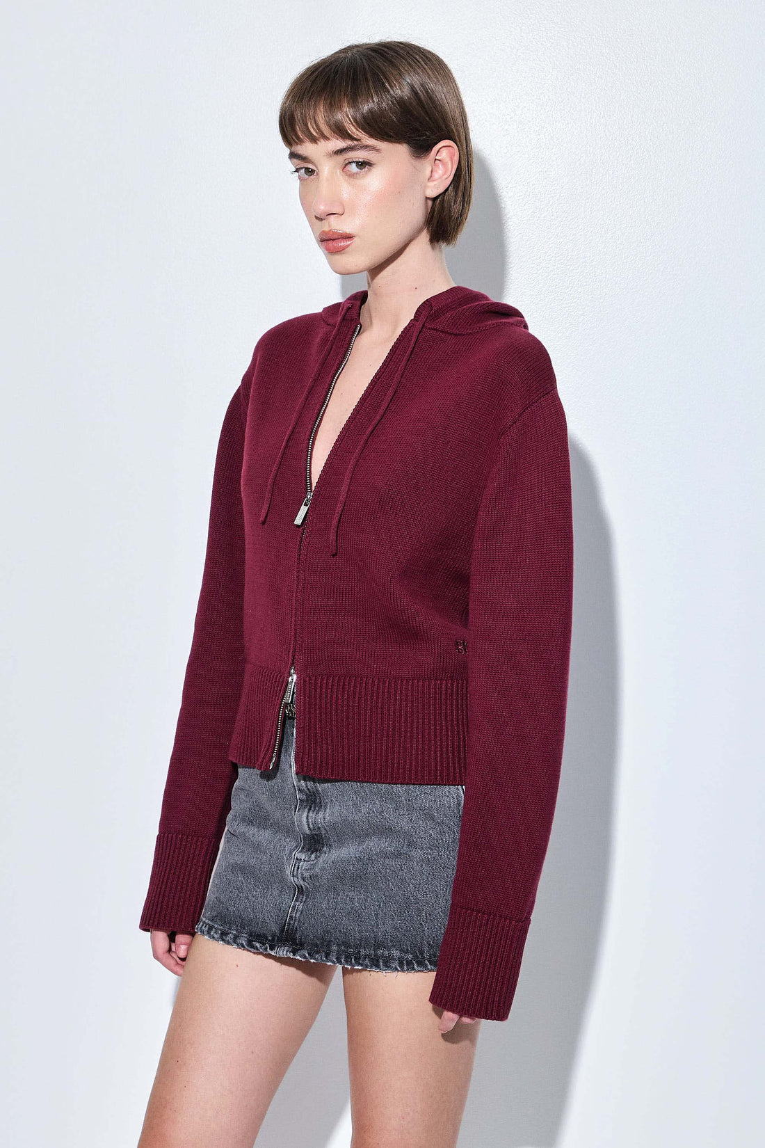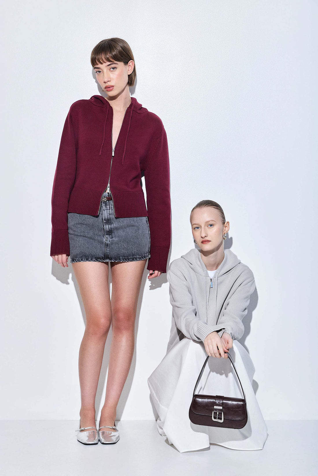 Our new double zipper hoodie is the coolest piece you'll own this season. 100% soft cotton fabric. Embroidered logo metal zipper closure. Ribbed finish. Tonal embroidered logo detailing on the front side. Adjustable strings and a delicate hoodie. Style it with our flattering pair of denim, our lettuce hem socks and throw our classic trench on top for a cool effortless look.